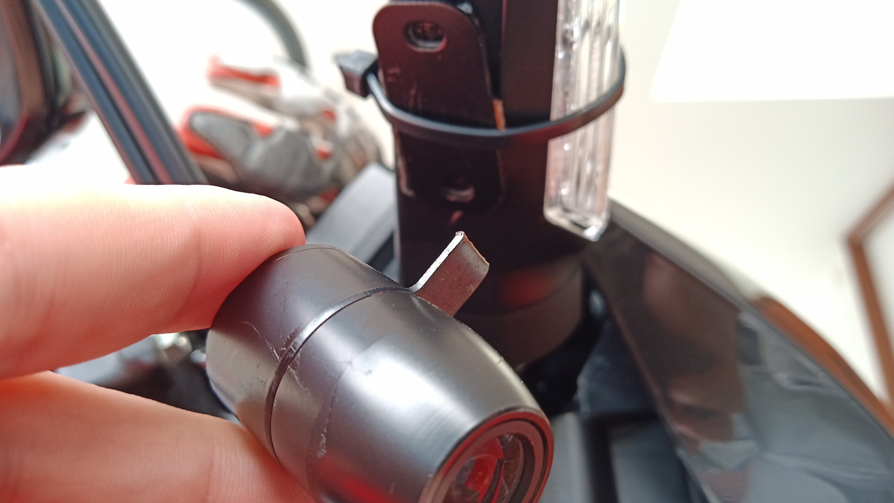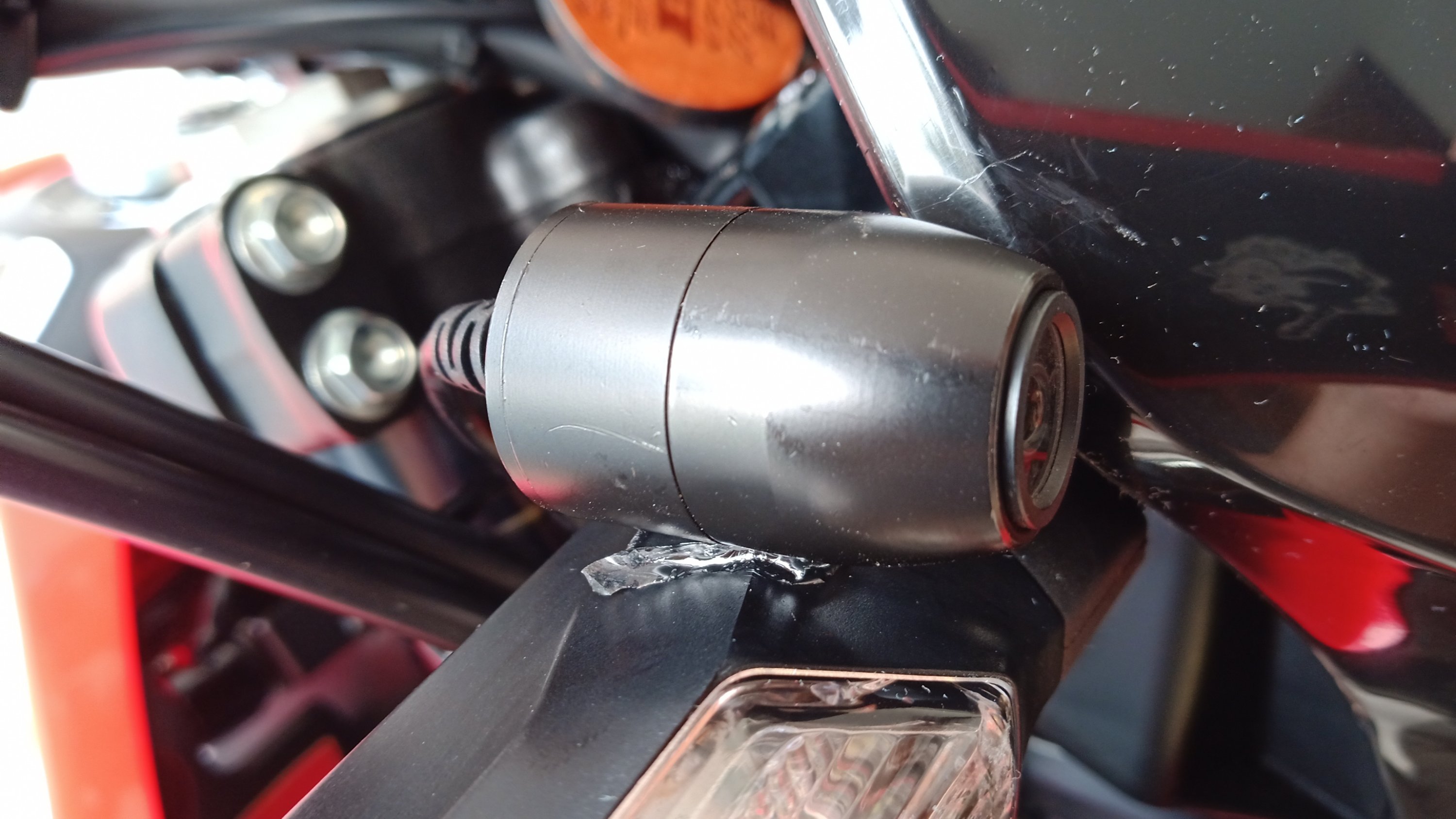 2020年9月29日2020年9月29日v4hero ドラレコのカメラ CRFのフロントにつけてあるドラレコのカメラ。ステーが折れてしまった。 何度も角度を変えたたからな。まぁしかたない。 で、ガムみたいな分厚い両面テープでウインカーの上に乗せる感じでつけてみたが、まあコレでいいんじゃないかな。おさまりもいいし。 共有: クリックして X で共有 (新しいウィンドウで開きます) X いいね:いいね 読み込み中…