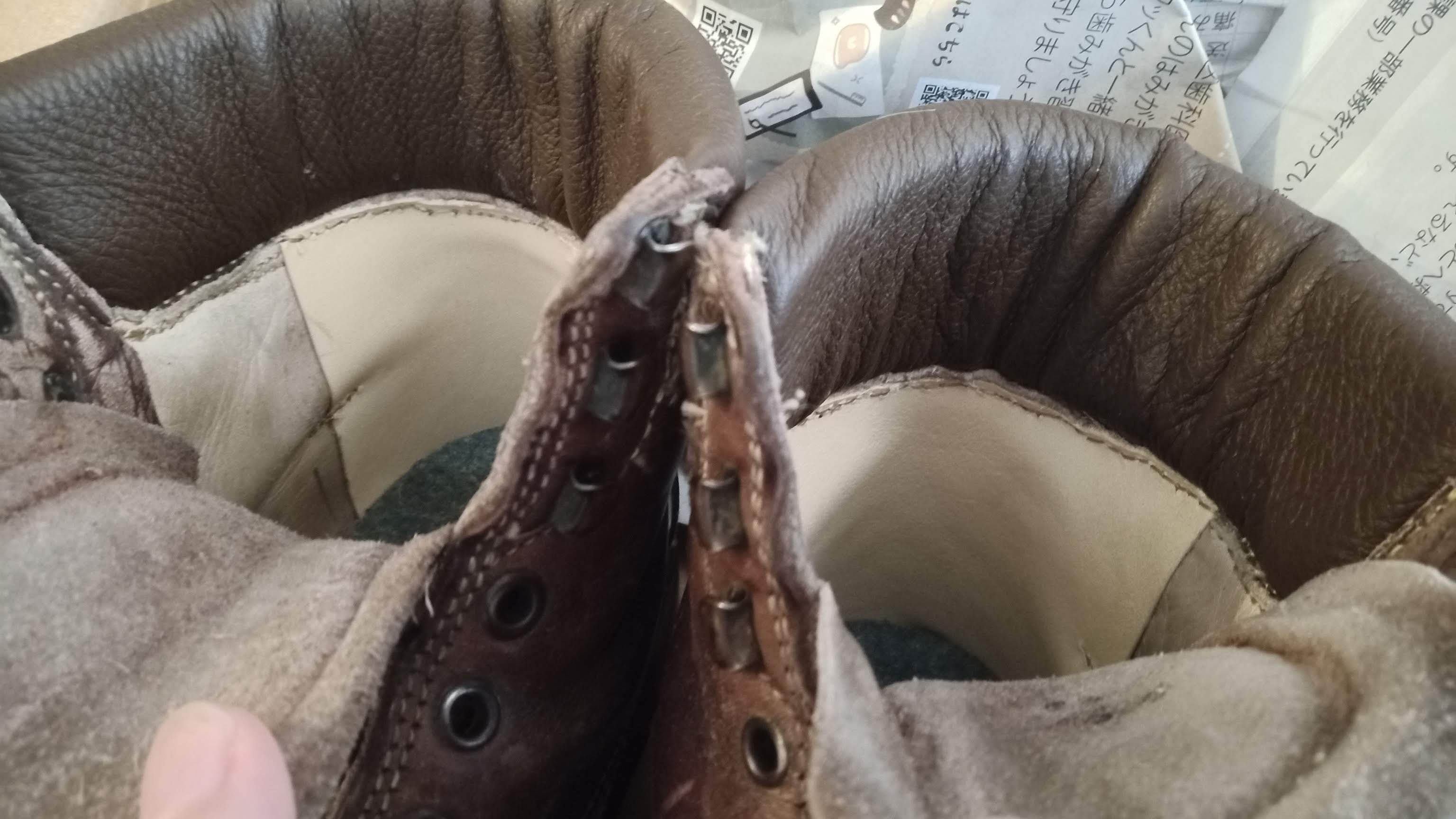 2022年5月15日2022年5月15日v4hero 妻のNo.145 修理に出していた妻のGAERNE(ガエルネ)No.145が戻って来た。 踵の内側の内装が破れてしまっていたのだが、張り替えてもらった。この部分は俺のNo.145も同じように修理してもらったことがある。もう10年以上前だと思うけどね。 娘が履くかもしれないので、オイルを塗って保管しておこう。 共有: クリックして X で共有 (新しいウィンドウで開きます) X いいね:いいね 読み込み中…