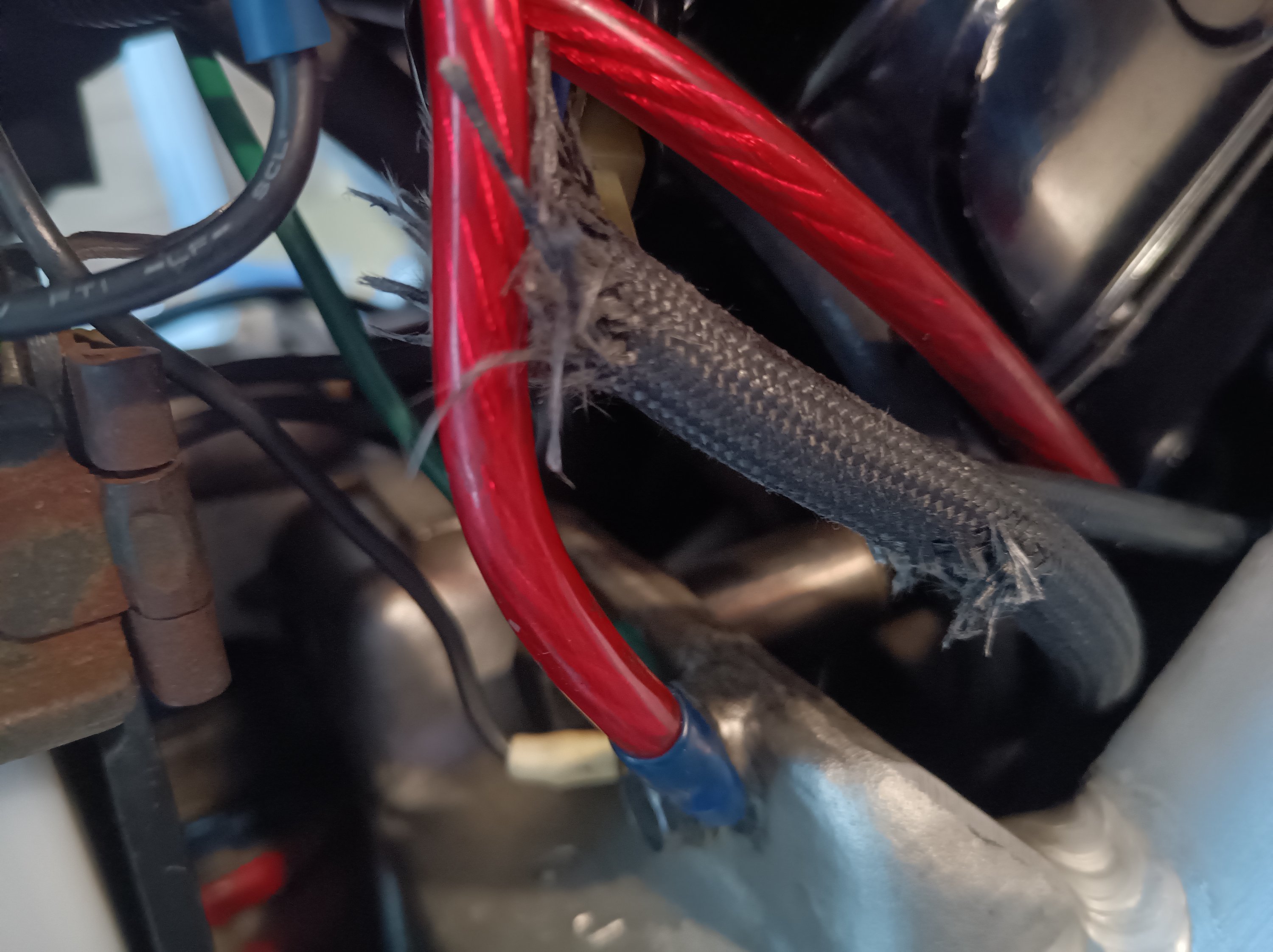 ハーネス保護チューブが裂けてしまっているのも仕方ないし、コレでトラブルってこともないけど、セルフラップを買って直してやろうかな。