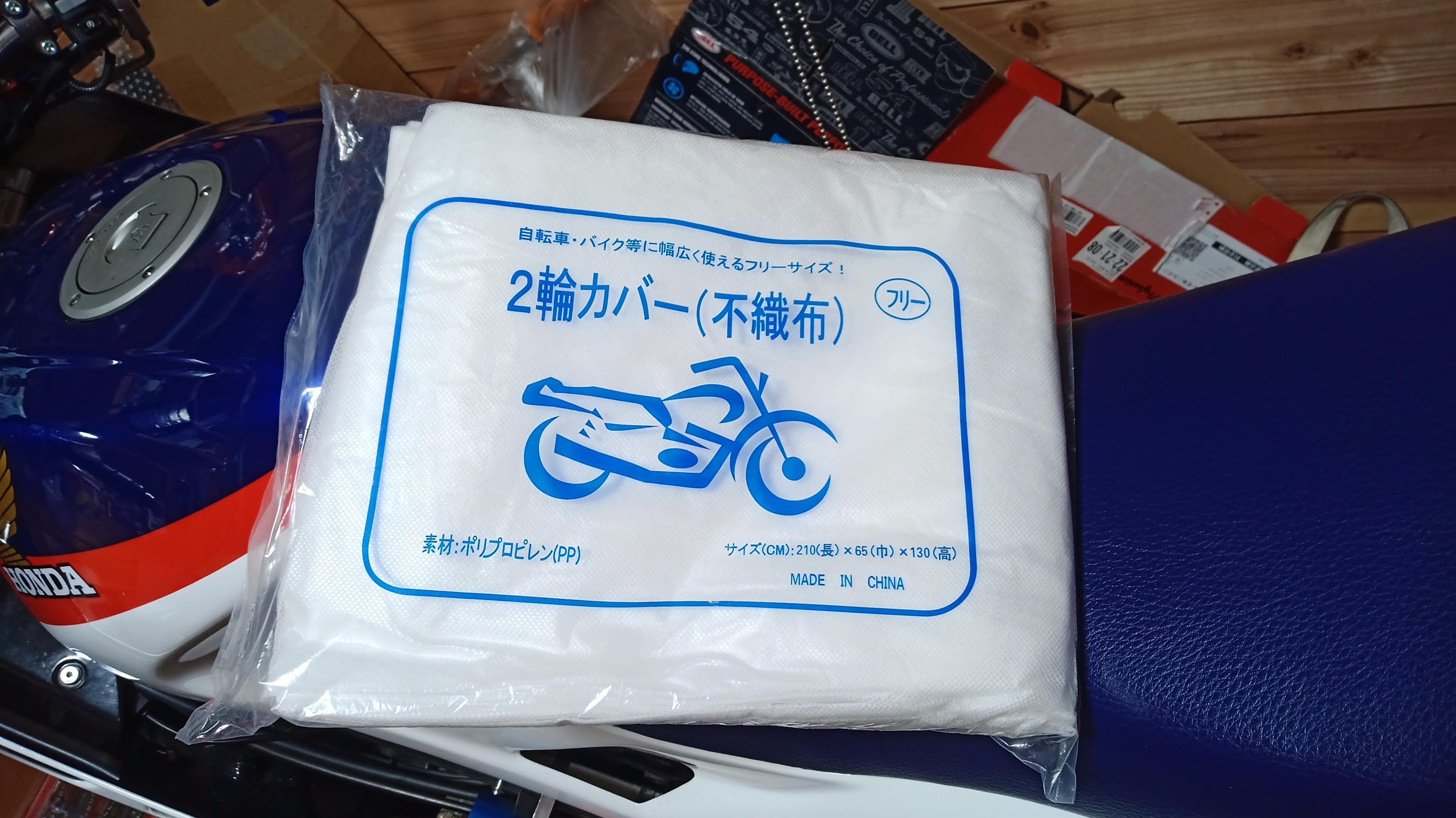 屋内用のバイクカバーとしてストレッチ素材のを売っているが、どれも5,000円以上してしまう。で、どうしたものかと思っていて見つけたのが不織布のバイクカバーだ。