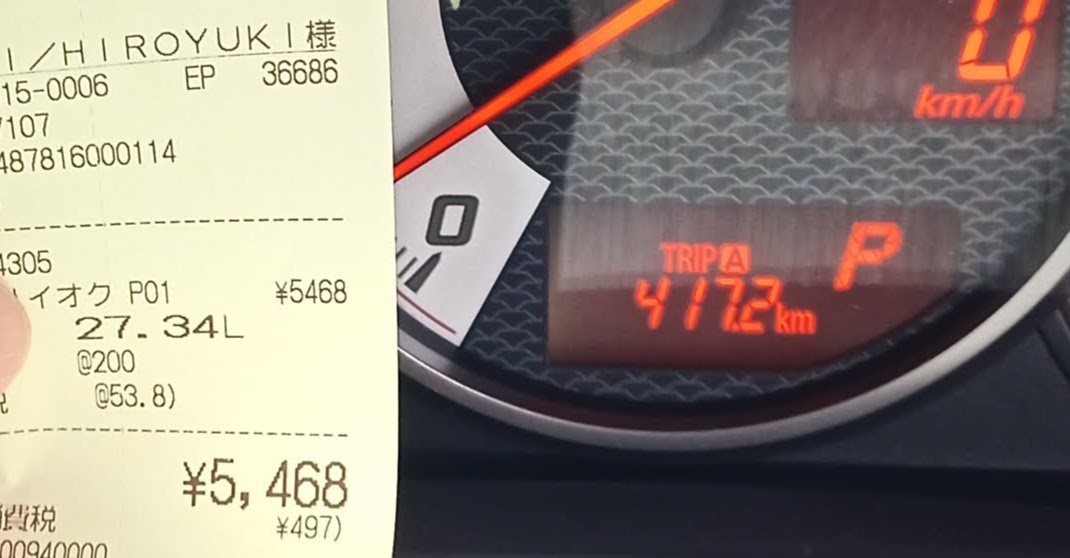 86は驚異の燃費。15Km/Lだった。が、ガソリンが高いな….。