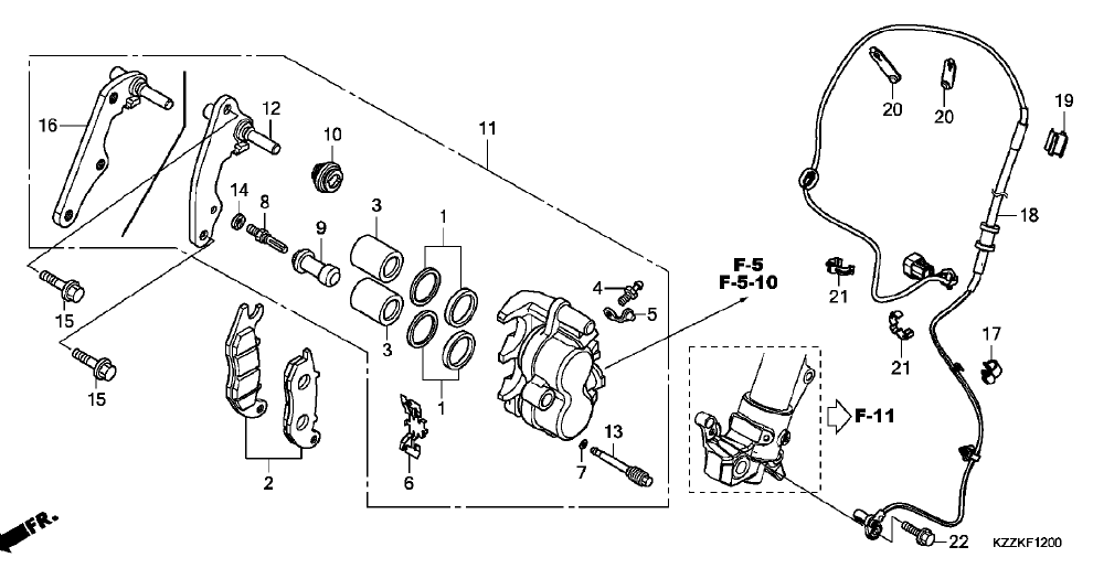 ・CRF250L用 純正キャリパーブラケット(45190-KZZ-901 下図の12番)