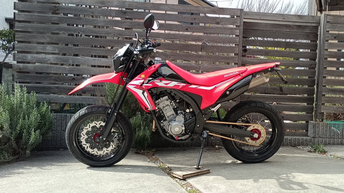 CRF250Mのブレーキディスクを320mm径のディスクに交換した。
