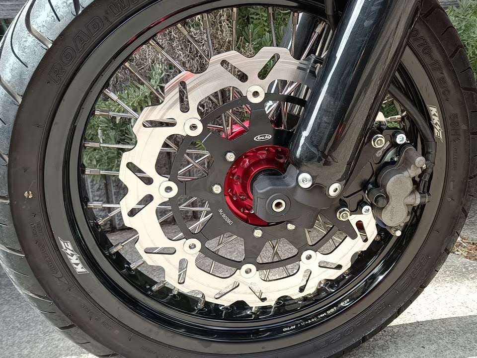もっとお金をかけていいなら、Moto-Masterの320mmフレイムディスクとか、TGRのTGR Supermoto Brake Kitなどもある。