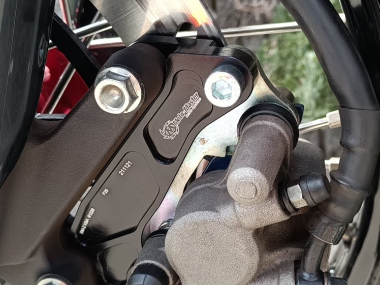 キャリパーサポートはMoto-MasterのCRF250L用だが、”L”用なので、Mで使うならキャリパーブラケットをL用の純正に交換する必要がある。