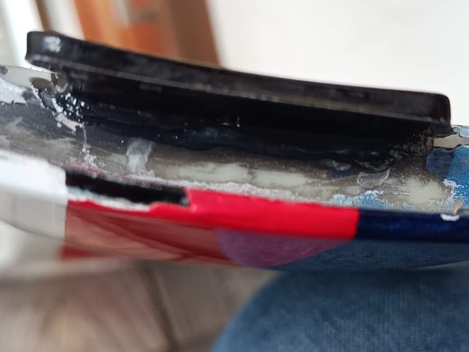 アイスの棒につけて、破断面周囲に塗り付けて、折れた部材を押し付けてみた。