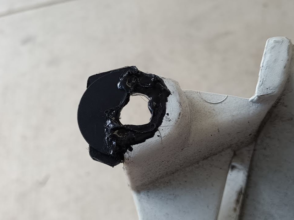 テールカウルの取付穴部分も片側が欠損したままなので、こっちも直してみる。