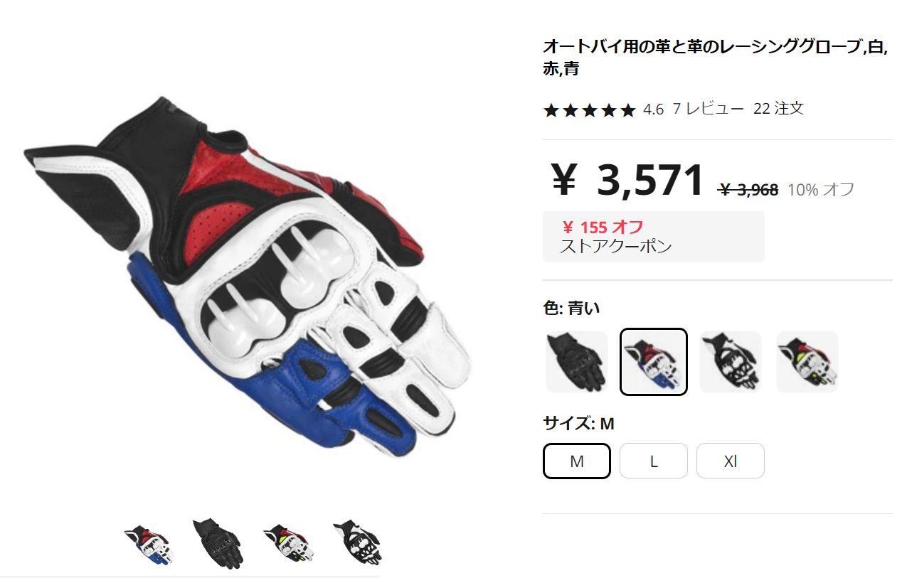 そこでAliexpressで探してみると、以下のグローブが見つかった。