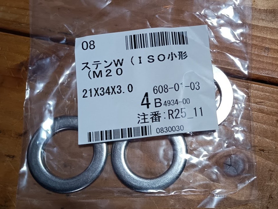 そこで、M20、外径34mm、厚さ3mmで探したら、その寸法はISOの規格品だと言うことが分かった。