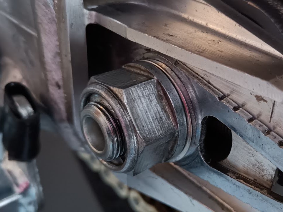 アクスルナットからもチェーン引きからもはみ出さなくなった。スッキリしたわ。自己満足の世界だけどね。