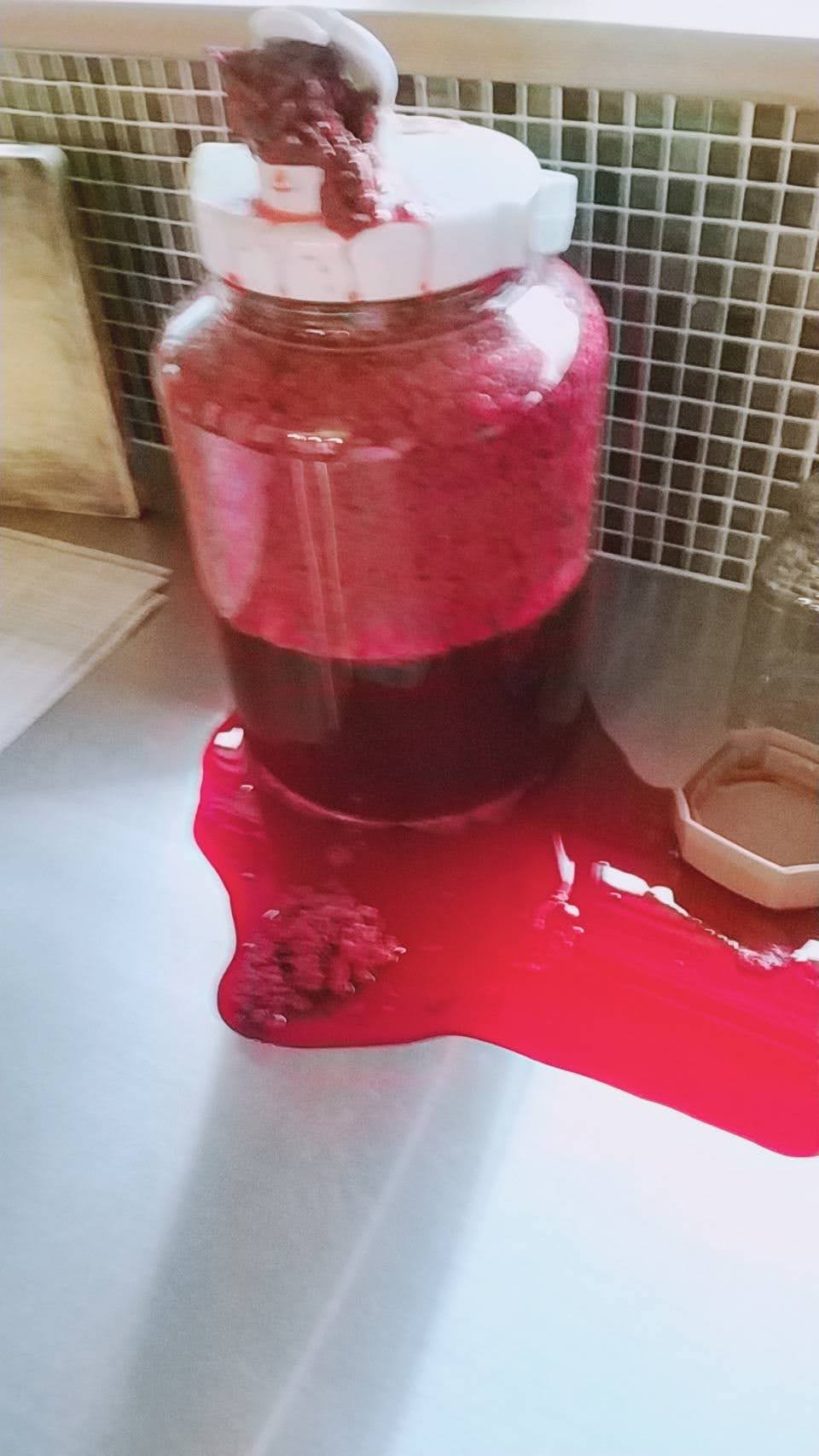 1日ほど置くとブラックベリーの搾りかすが上に浮いてくるので、朝昼晩くらいでいいので広口瓶をゆするなり、スプーンかなにかで混ぜるなりしてやる。