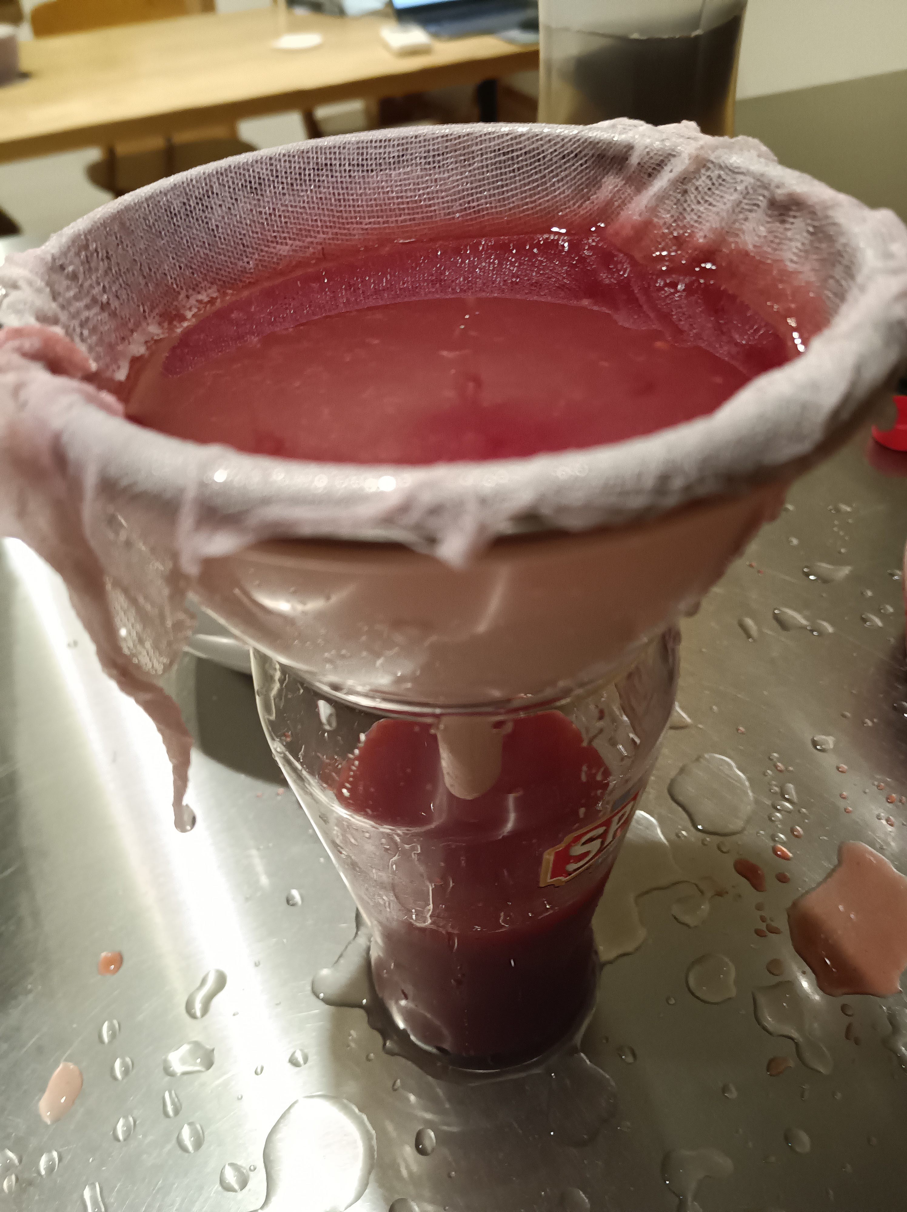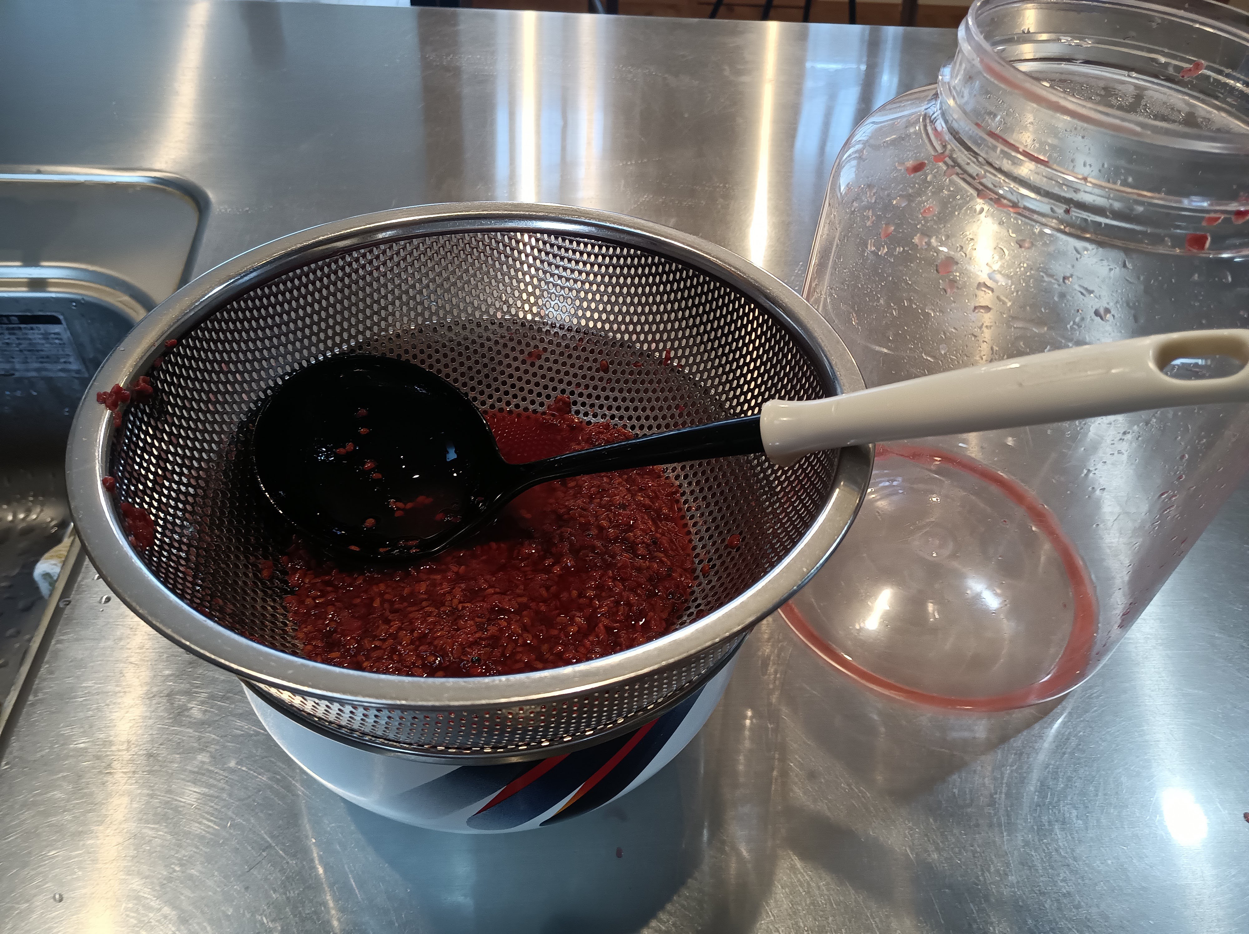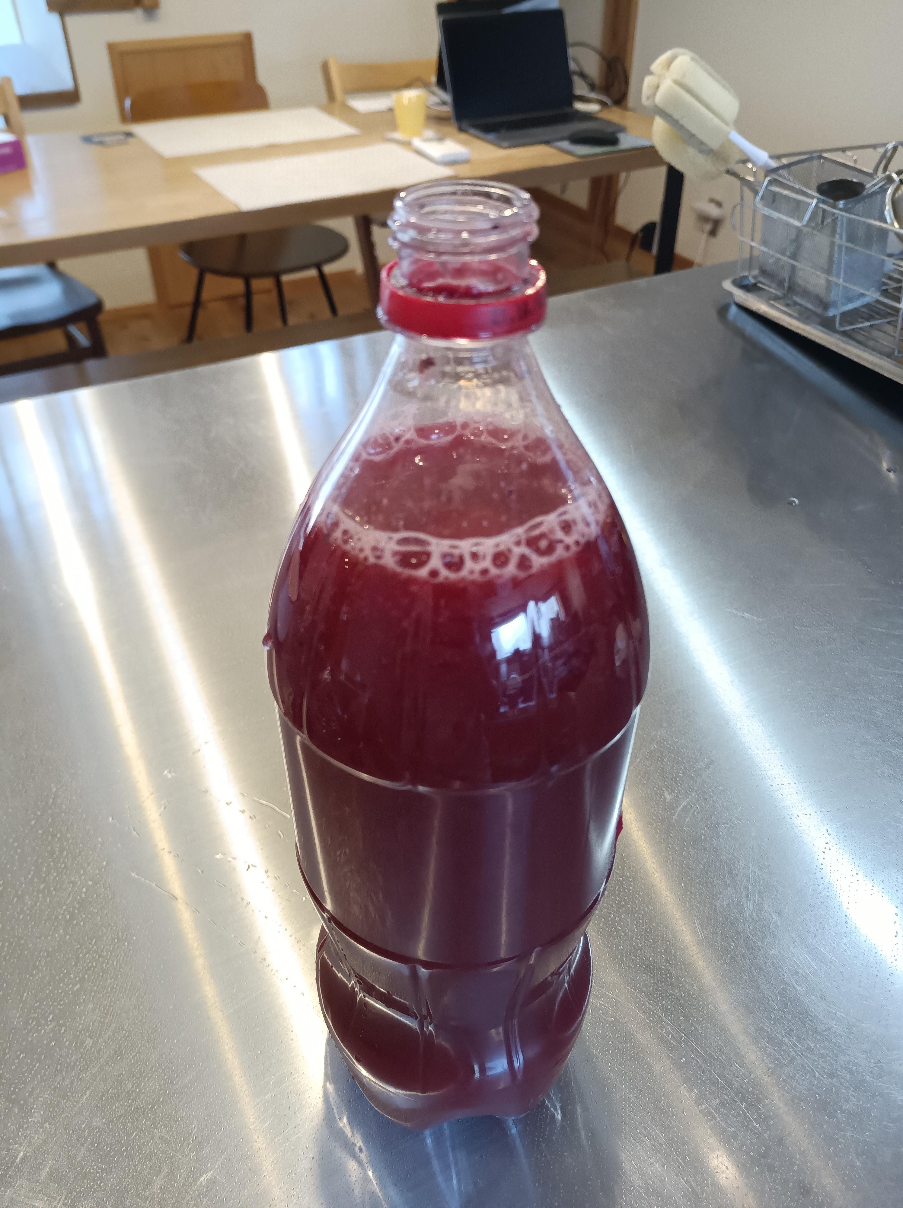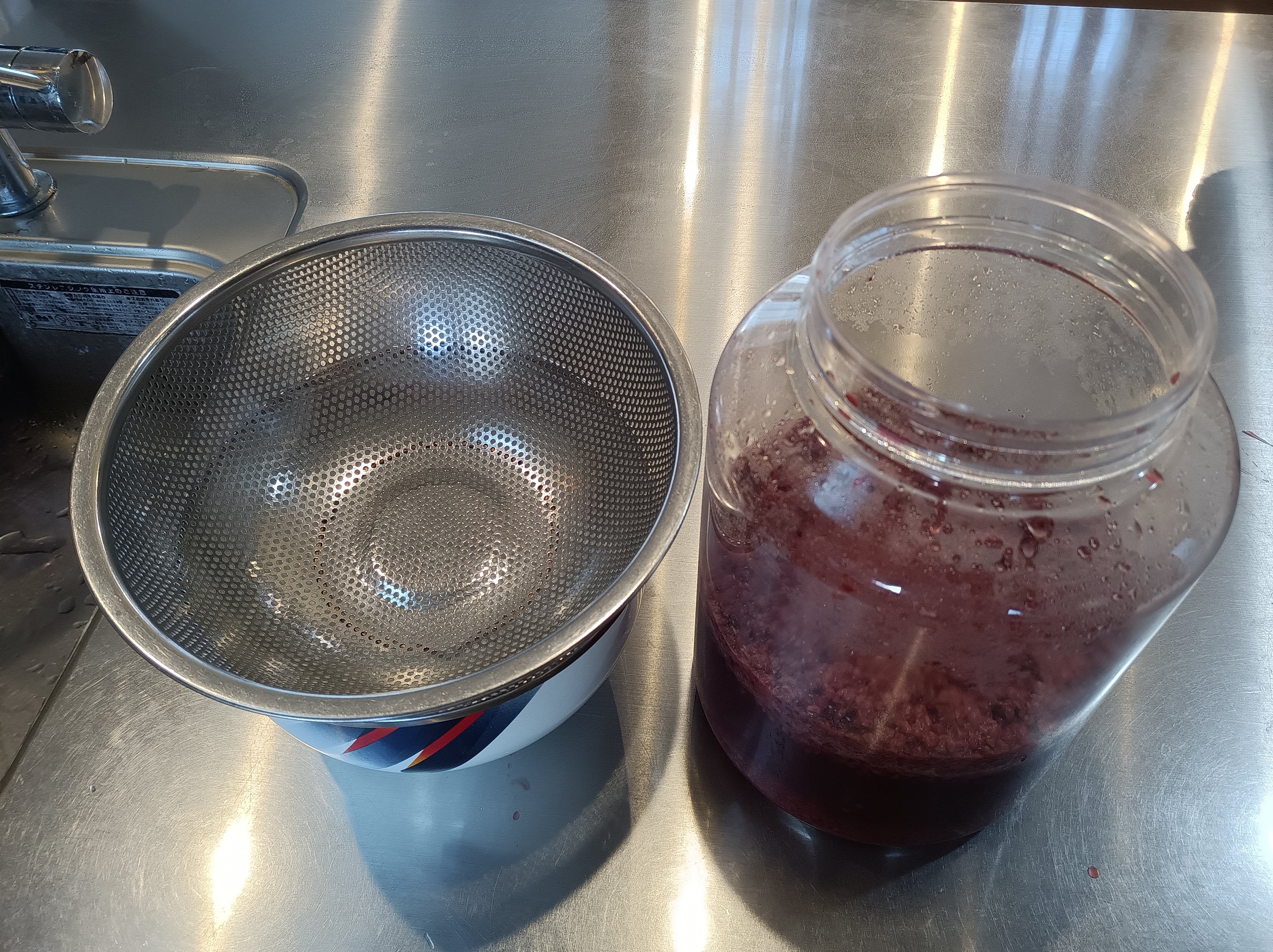 発酵させたものをザルで濾してワインボトルか炭酸飲料が入っていたペットボトルに移す。