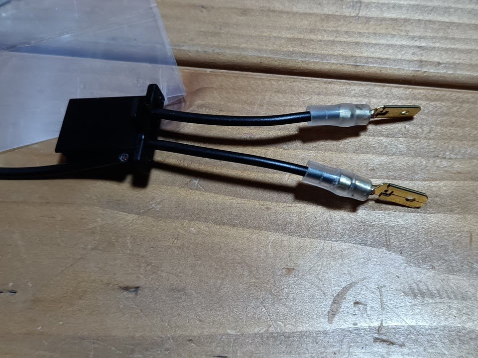 クラッチスイッチのコネクタが110型3極雄カプラーになっていて、そのままではHONDAの古めのバイクのクラッチスイッチの旗型コネクタに合わないので、110型3極雌カプラーと平端子を使って変換コネクタを作った。