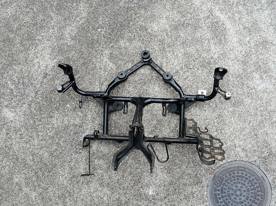 外したカウルステーは見た目には歪んでいるようには見えない。そもそも、このRC24が帰って来たときに曲がっていたので、曲がりのない中古品に交換しているんだよね。