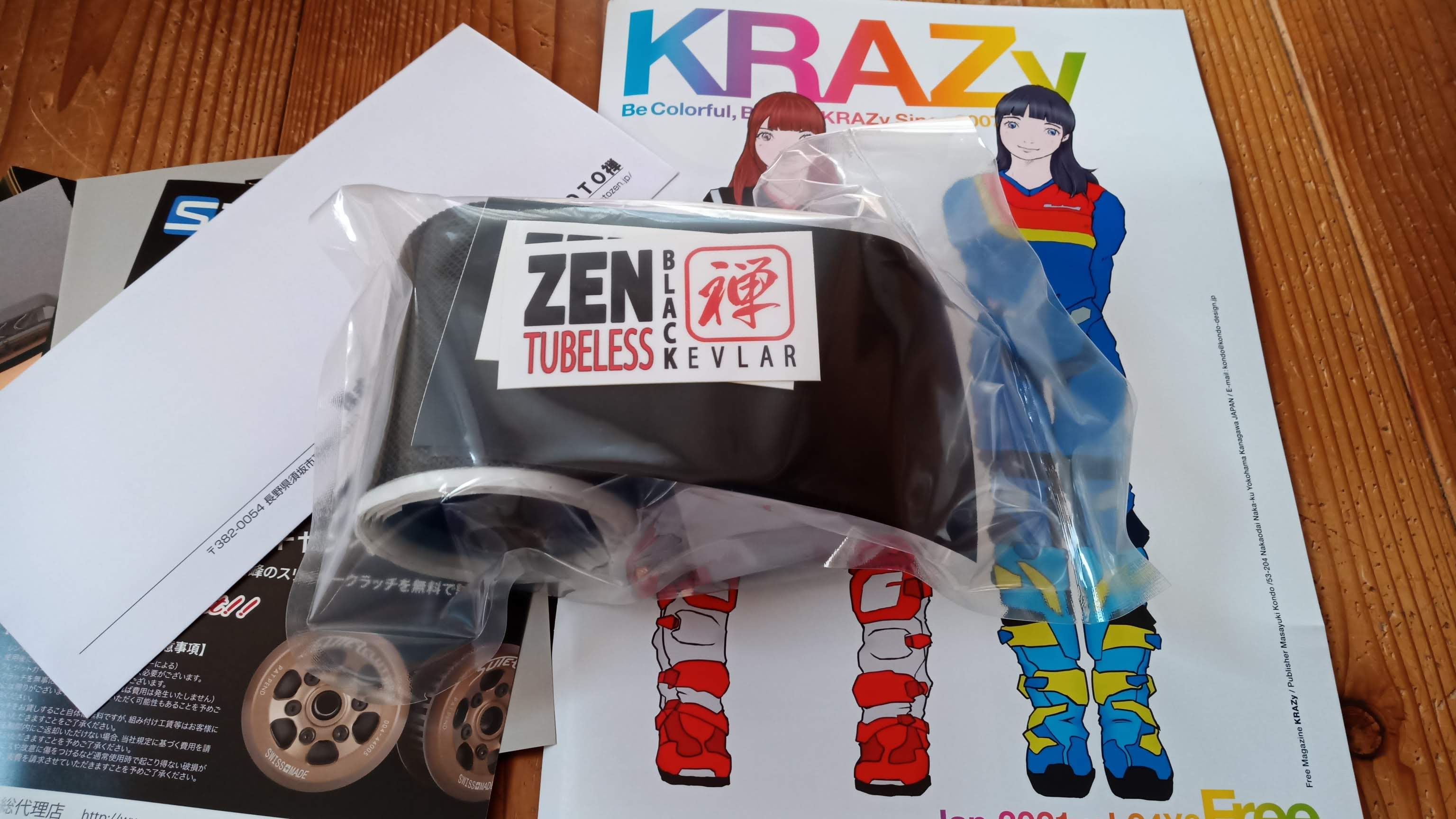 チューブレスキットはMoto禅のブラックケブラーだ。