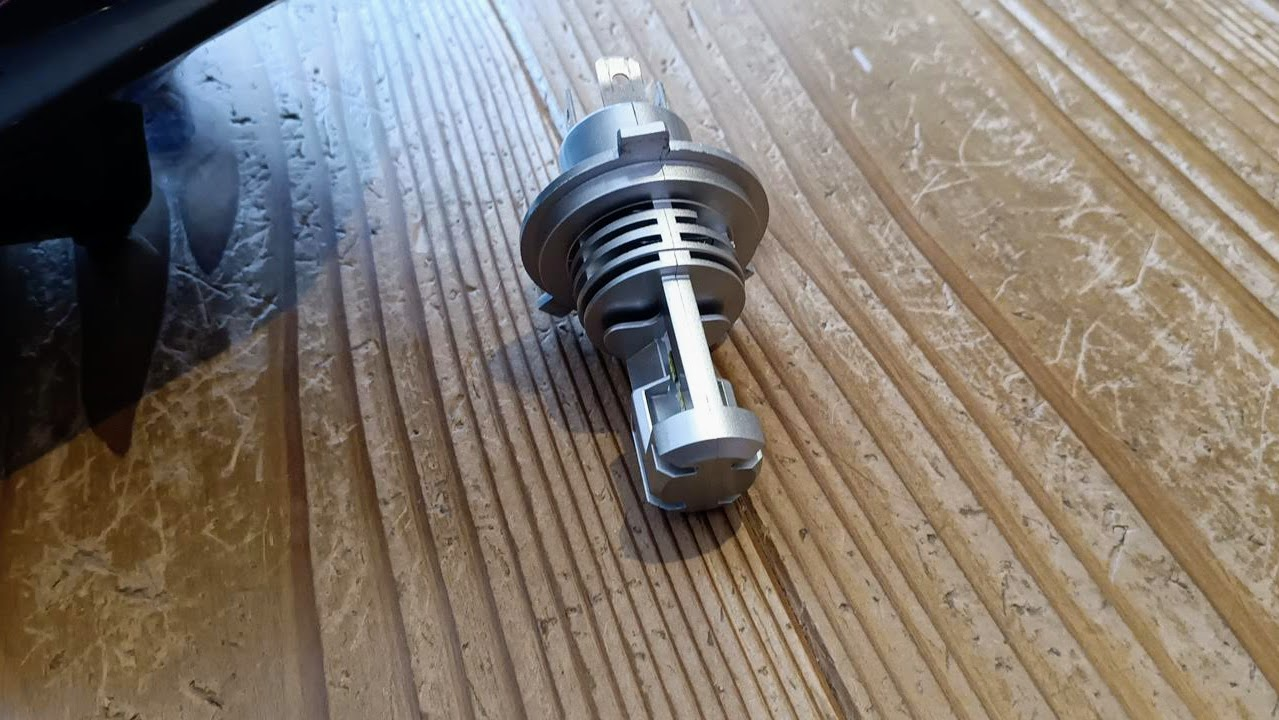 調整してみたけれど、調整できる範囲でもないなと思ってよく見たところ、LEDバルブの左側が壊れているみたいで、左だけ光量が半分くらいになっていた。