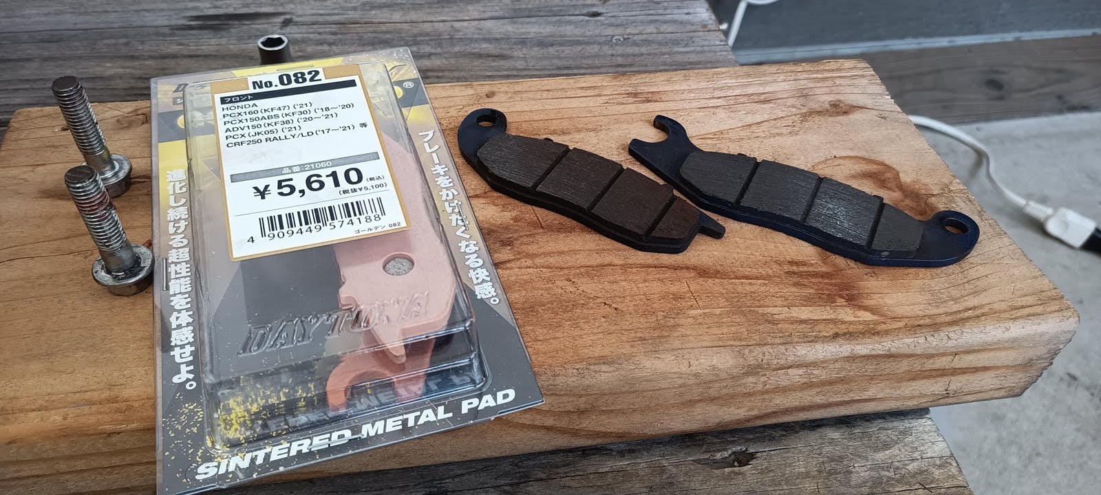 パッドは以下の投稿でRC24(VFR750F)でも使っていたデイトナのハイパーシンタードにしたかったけど、CRFにはハイパーシンタードは設定が無かったのでゴールデンパッドにしてみた。