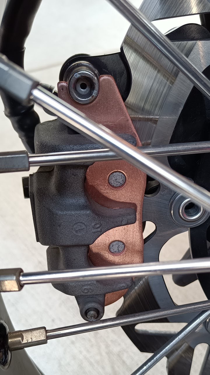 俺のCRFはArashiの320㎜ディスク+Yakuza Customのブラケットで320㎜ディスクにしてあるのだけれど、寄せ集め的な組み合わせなので、パッドがディスクをはみ出しているんじゃないかなと思っていたのだ。