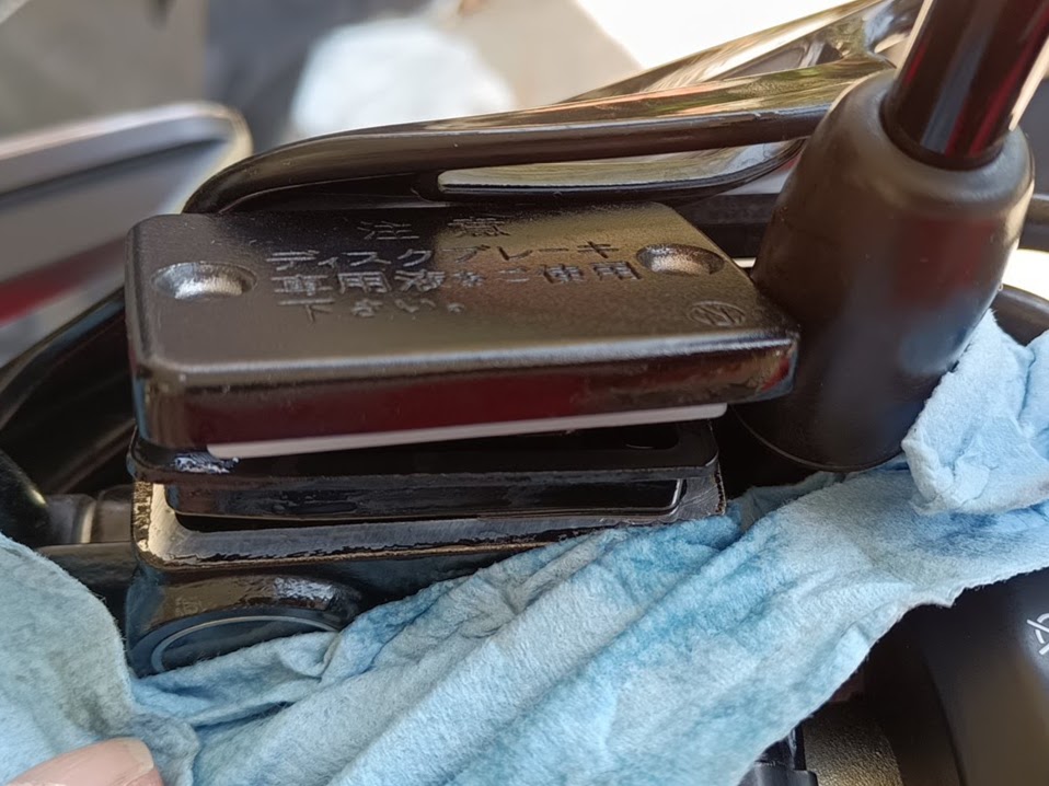 ちなみにパッドを交換するときは、パッドの厚みが増えた分だけフルードが押し戻されるので、マスターカップ側のフルードを抜いてやらないとだよ。溢れるからね。
