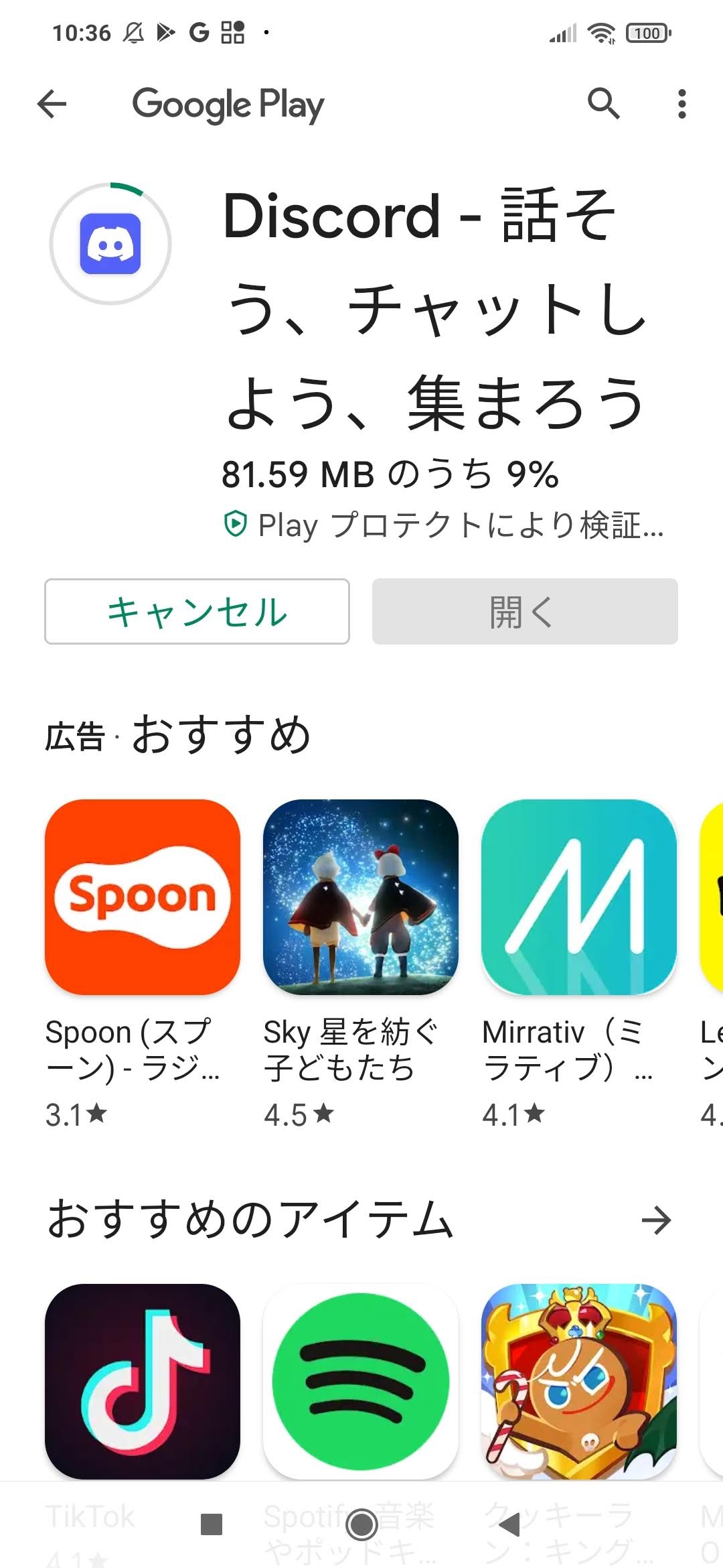 ストアの操作でインストールする。