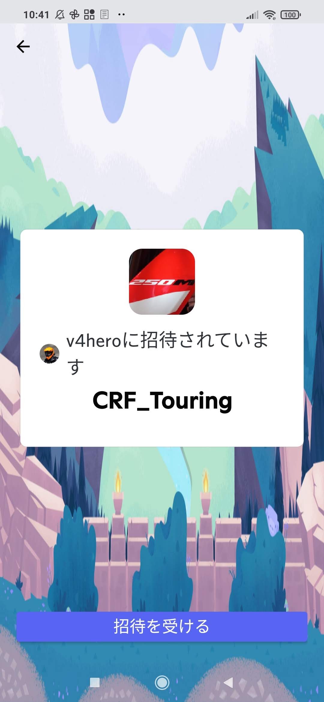 スマホでの手順で説明する。サーバを作った人から以下のように招待のURLが来たらそれをタップする。