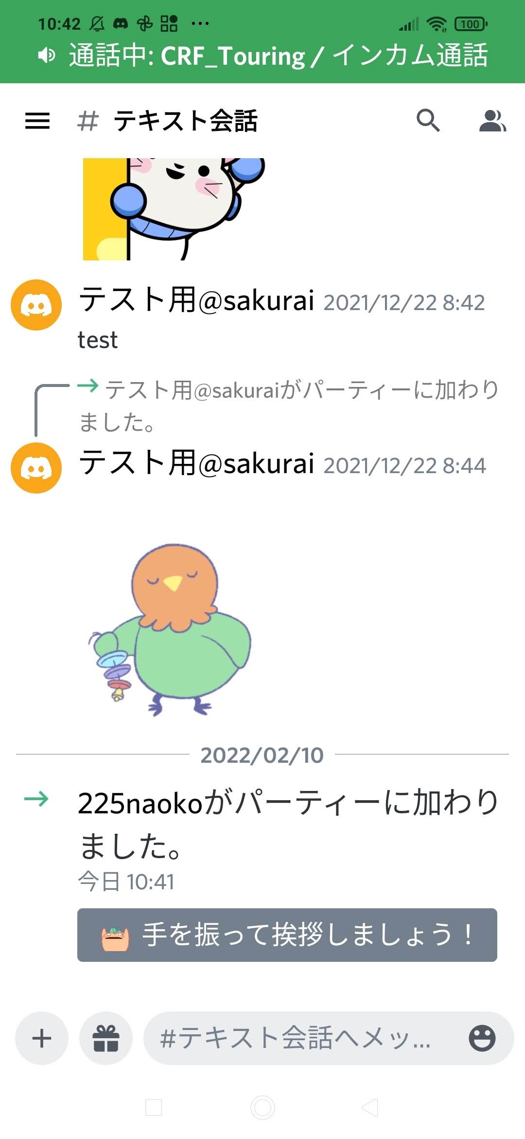 これでとりあえずテキスト会話(Lineのグループみたいなの)に参加できたはず。
