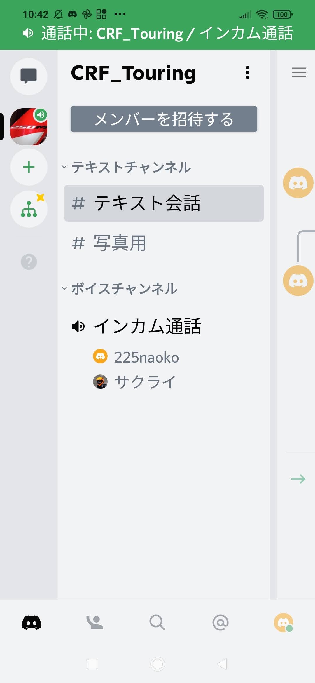 ちなみにCRF_touringのサーバーにはテキスト会話とインカム通話の2つのチャンネルだけにしてあります。