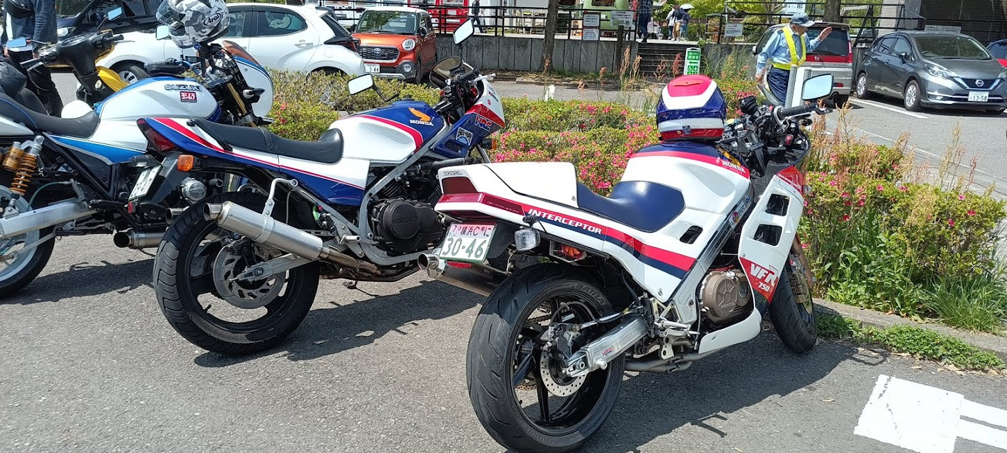 もうちょっと先まで行きたかったけれど、ほどほどにしておいた方が良さそうなので道の駅どうし往復で帰って来たが、帰り道にはもう一台白いRC79とすれ違ったり、赤/黒のRC15を見かけたり、RZV500を見かけたりした。