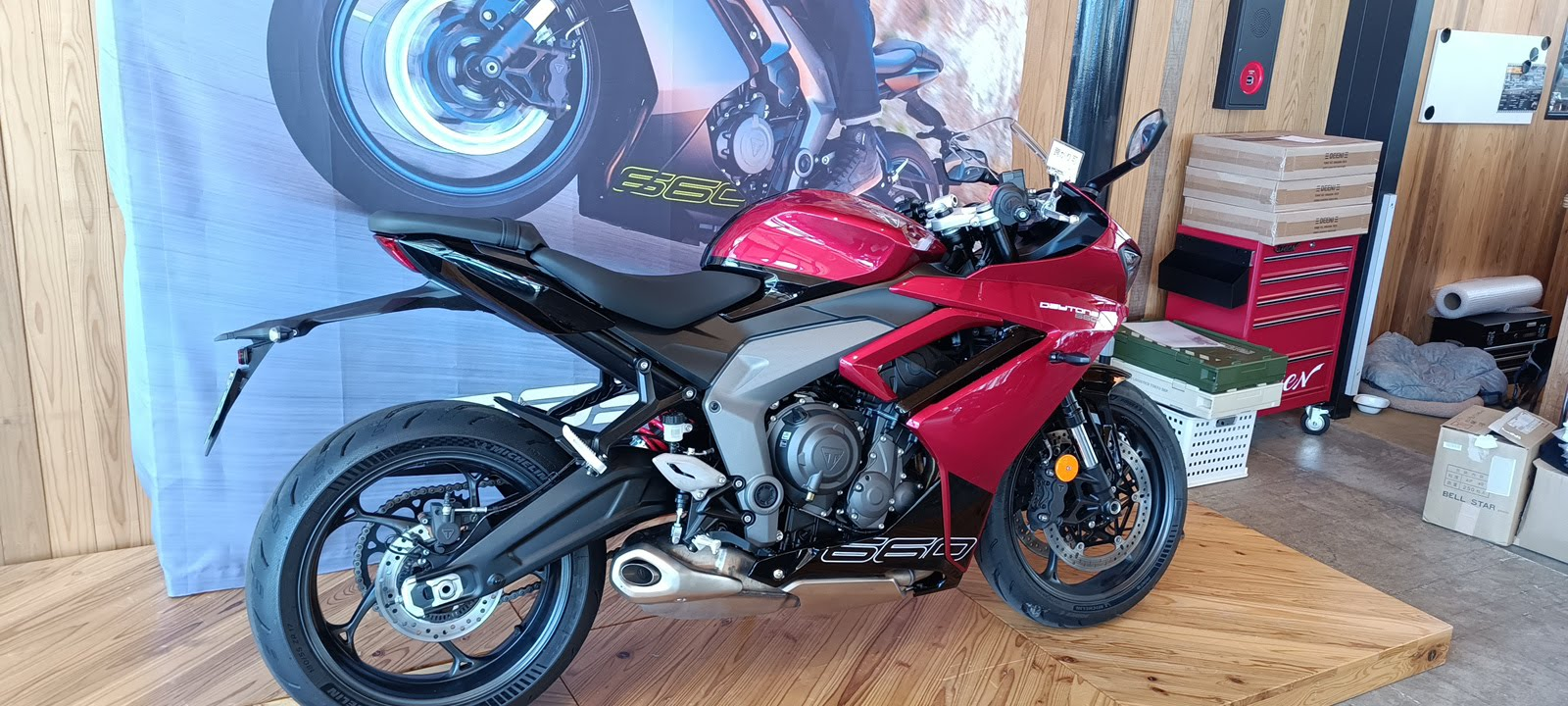 この動画の途中で出て来るけれど、バイカーズパラダイス南箱根にトライアンフの新型Daytona660が置いてあって、跨りOKだったので跨って来た。