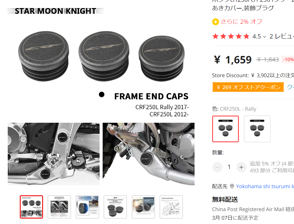 CRFのフレームにある穴をふさぐキャップを買ってみた。