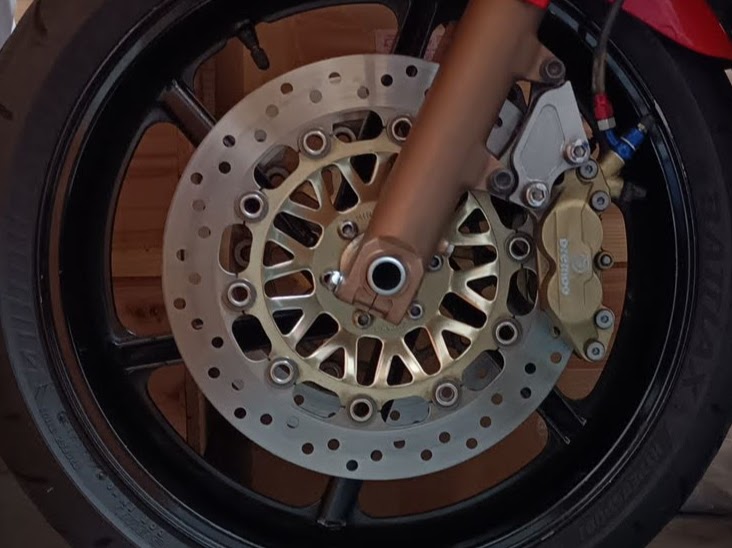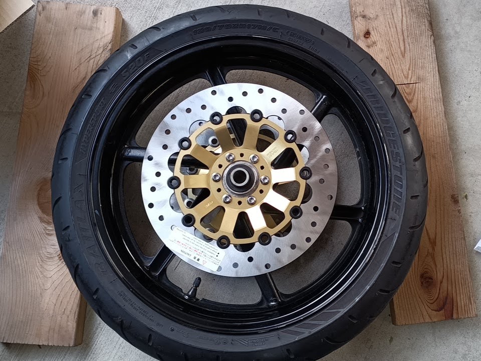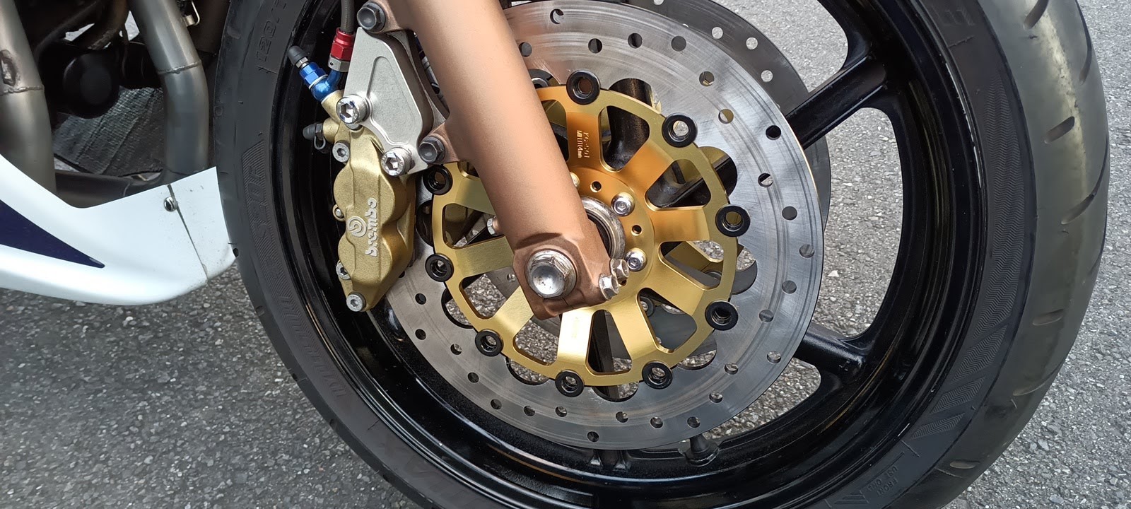 俺のRC24(VFR750F)のフロントブレーキディスクは、ホイールと同じCBR600F3のモノだ。
