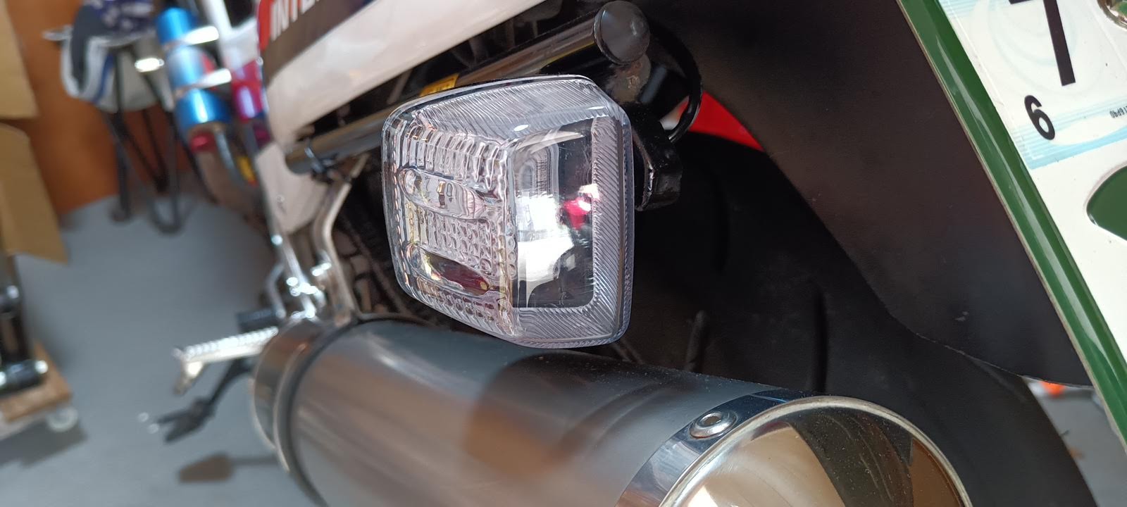 リアウインカーも変更した。CRFのお下がりでつけてあった尖った形状のLEDウインカーを使っていたけれど、AliexpressでNC30風のLEDウインカーを購入して取り替えた。
