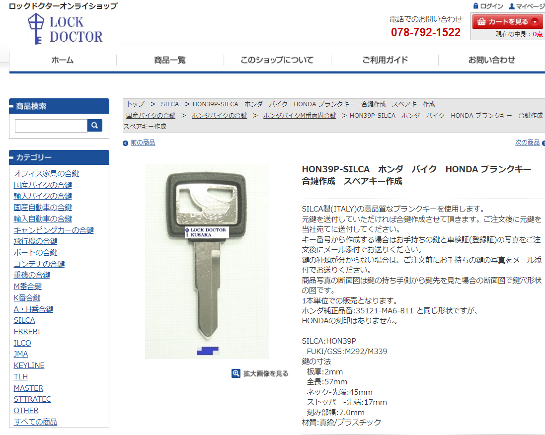 HON39P-SILCA ホンダ バイク HONDA ブランクキー 合鍵作成 スペアキー作成