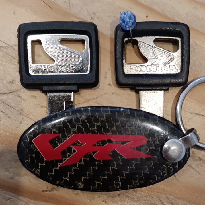 俺のVFR750F(RC24)などの80年代のホンダ車の鍵は「額縁キー」と呼ばれるちょっと凝ったデザインのキーだったが、今は純正ブランクキーを買っても現行ののっぺりしたデザインのキーになってしまう。