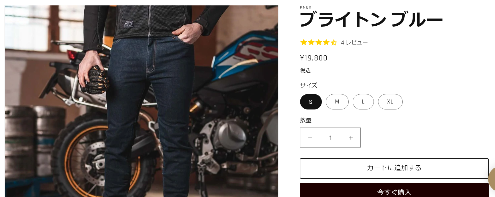 バイク用のジーンズ「KNOX BRIGHTON BLUE(ノックス ブライトンブルー)」を入手しました。
