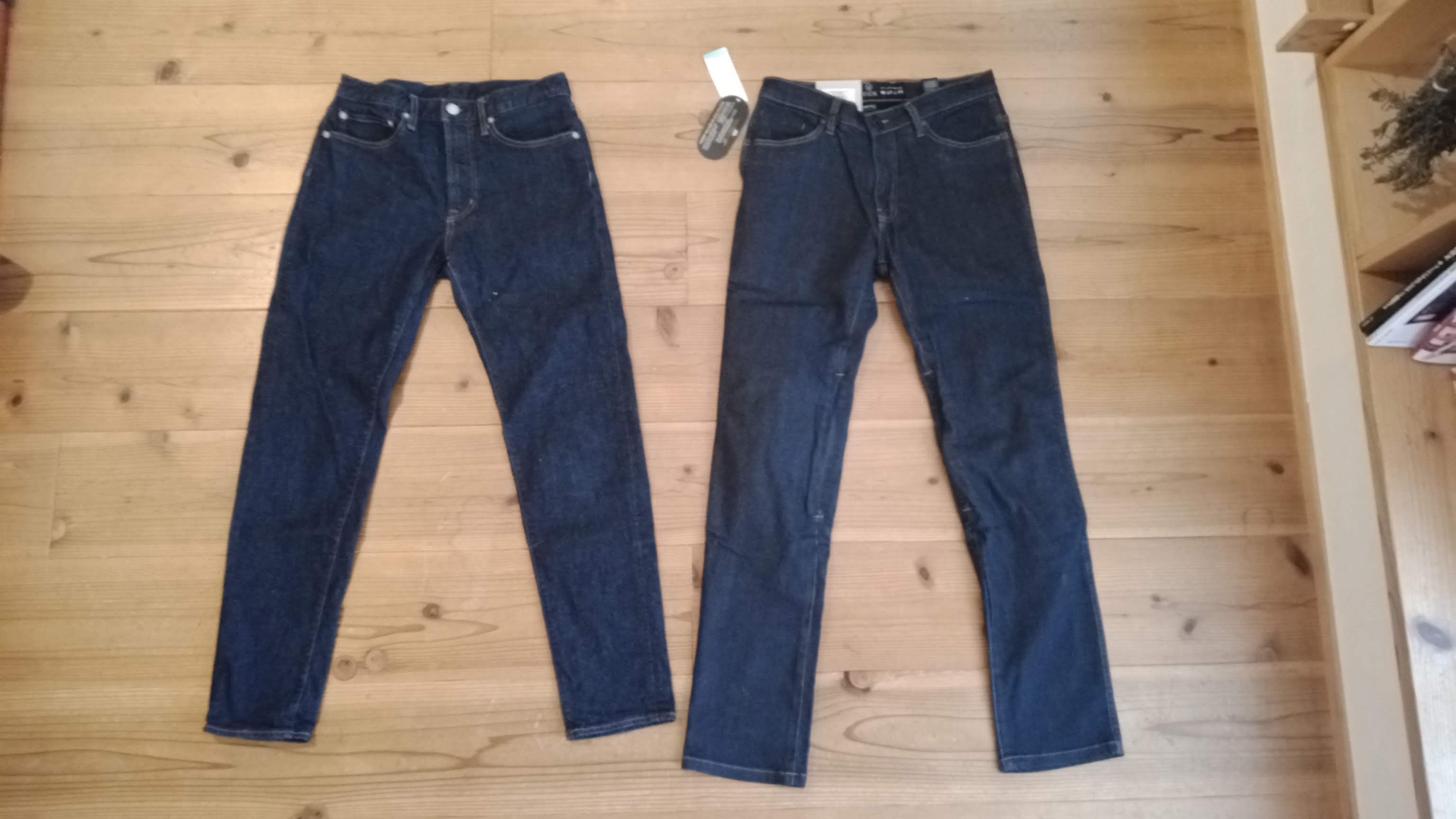 以下の写真はブライトンとGU ストレッチスリムジーンズを並べた写真です。
