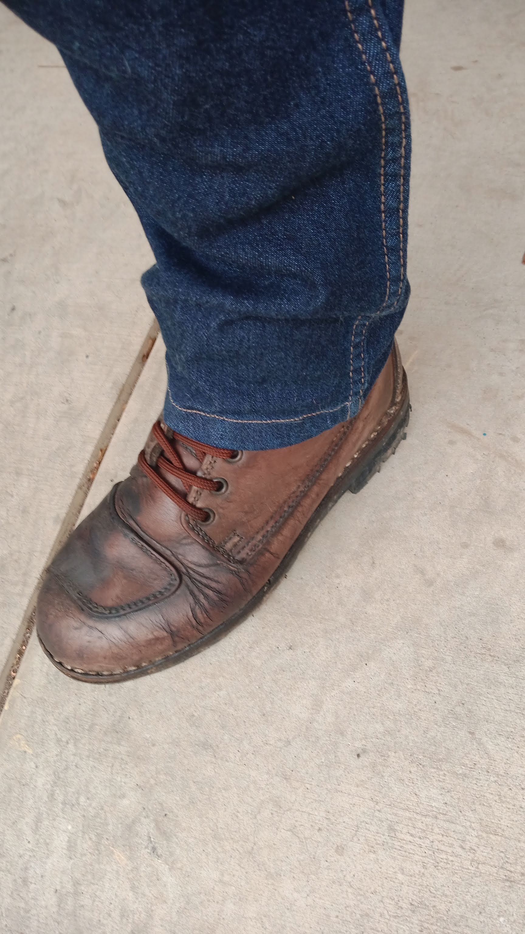 ここでちょっとしたオマケですけれど、GAERNE(ガエルネ)No.145のような紐靴タイプのバイク用ブーツでは、靴紐がステップなどに引っ掛かるのではと考える方もおられるかもしれませんが、次の2枚目の写真のようにブーツイン(パンツアウト)で履くと、パンツの裾が靴紐をカバーしてくれるので、引っ掛かりにくくなると思います。