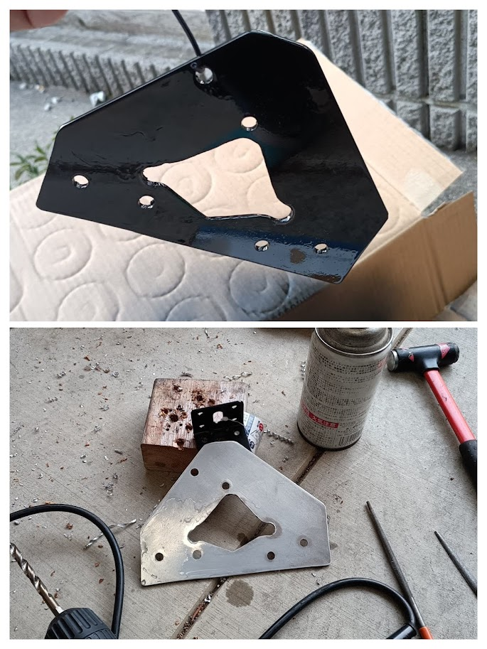 だけど端材を切って穴を開けただけだったので、今回こそはちゃんとしたものを作ろうと思い、3mm厚のアルミ板を切って塗装もしてやった。