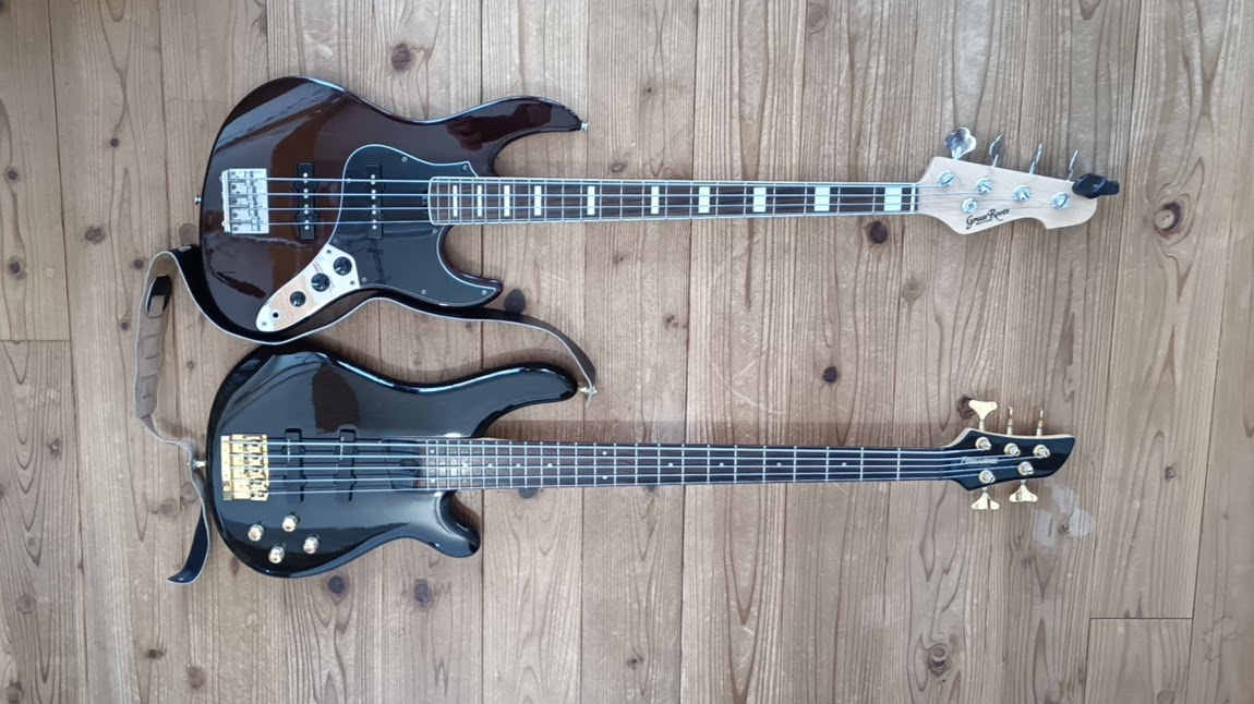 2025年4月14日2025年4月14日v4hero ミディアムスケールのジャズベース 娘が軽音に入ってベースをやりたいって言うので、ミディアムスケールのジャズベースを中古で買った。 写真で上側に写っているのがそれだ。Grassroots(ESP)のジャズベースだけれど、ミディアムスケールに合わせてボディ形状やヘッドのデザインがフツーのジャズベースとは少し変えてある。 めちゃ弾きやすいな! みんながジャズベースを使う理由がちょっと分かった気がする。まぁフツーのジャズベースじゃないからなんとも言えないけどね。