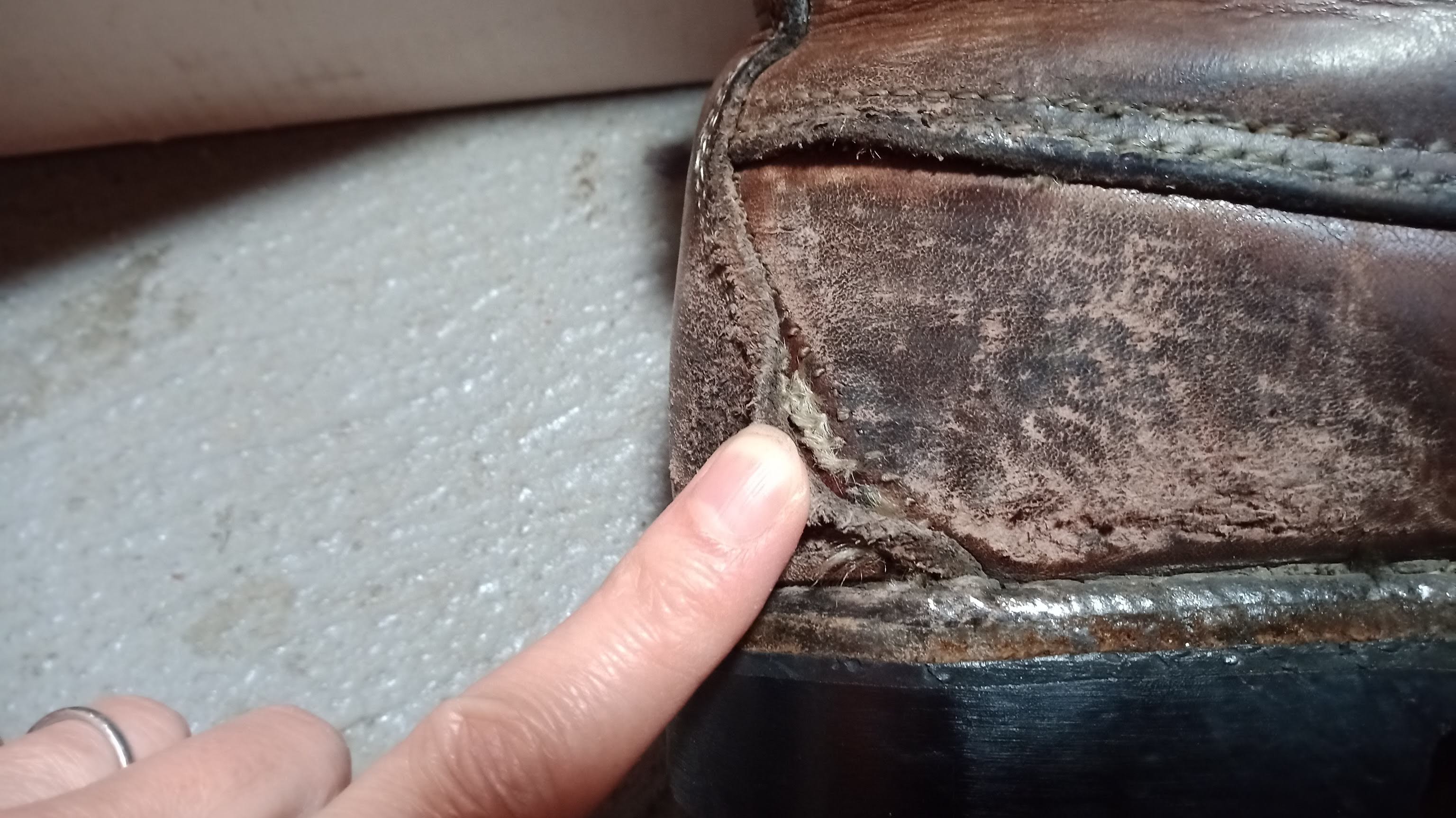 妻もその翌年の1994年に一緒に行ったツーリングの写真を見ると既に履いているので、妻のは28年くらい経っているみたいだ。