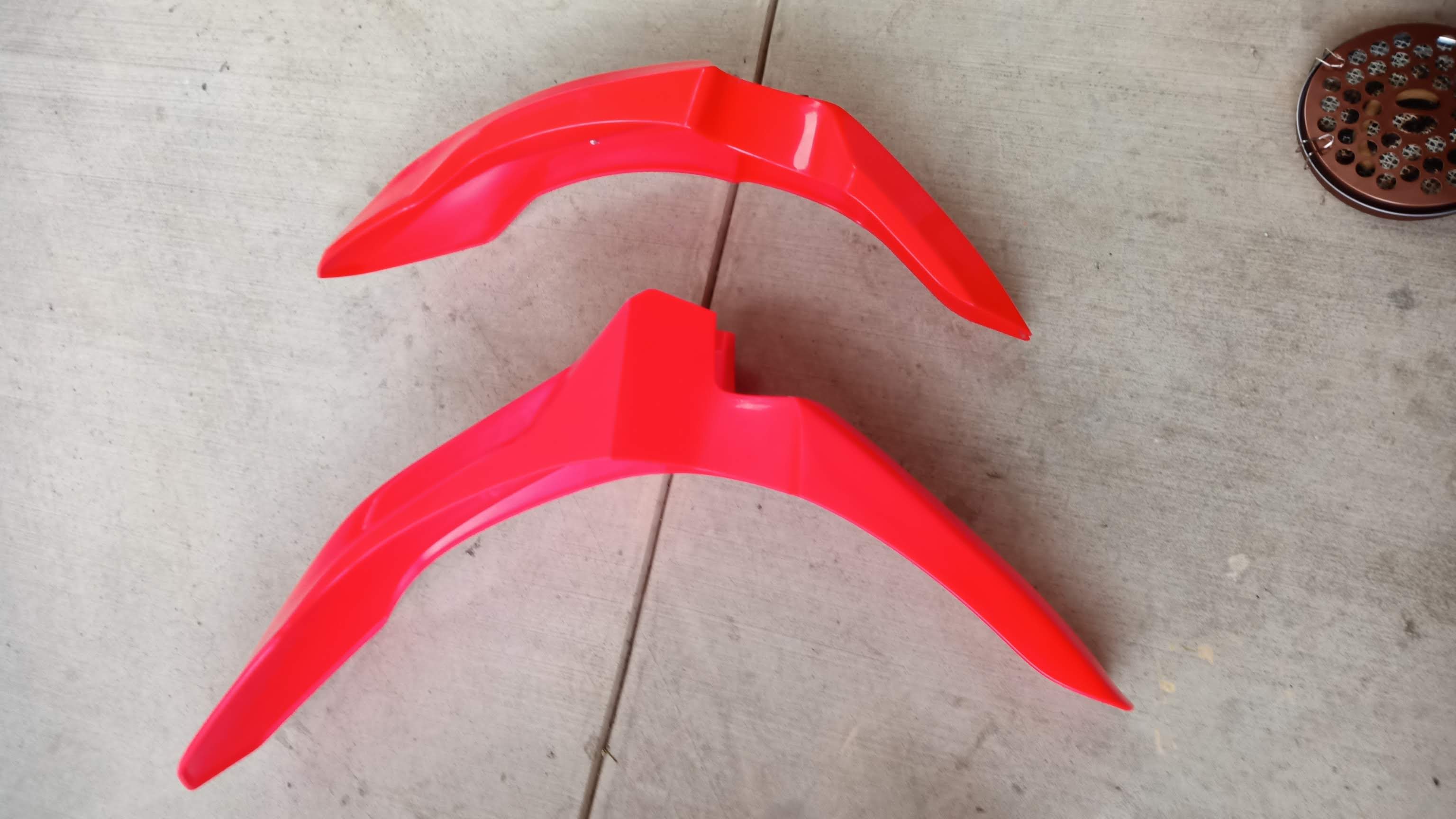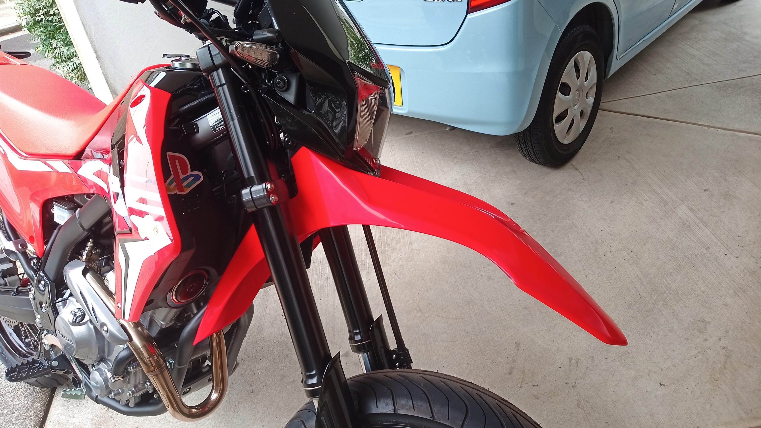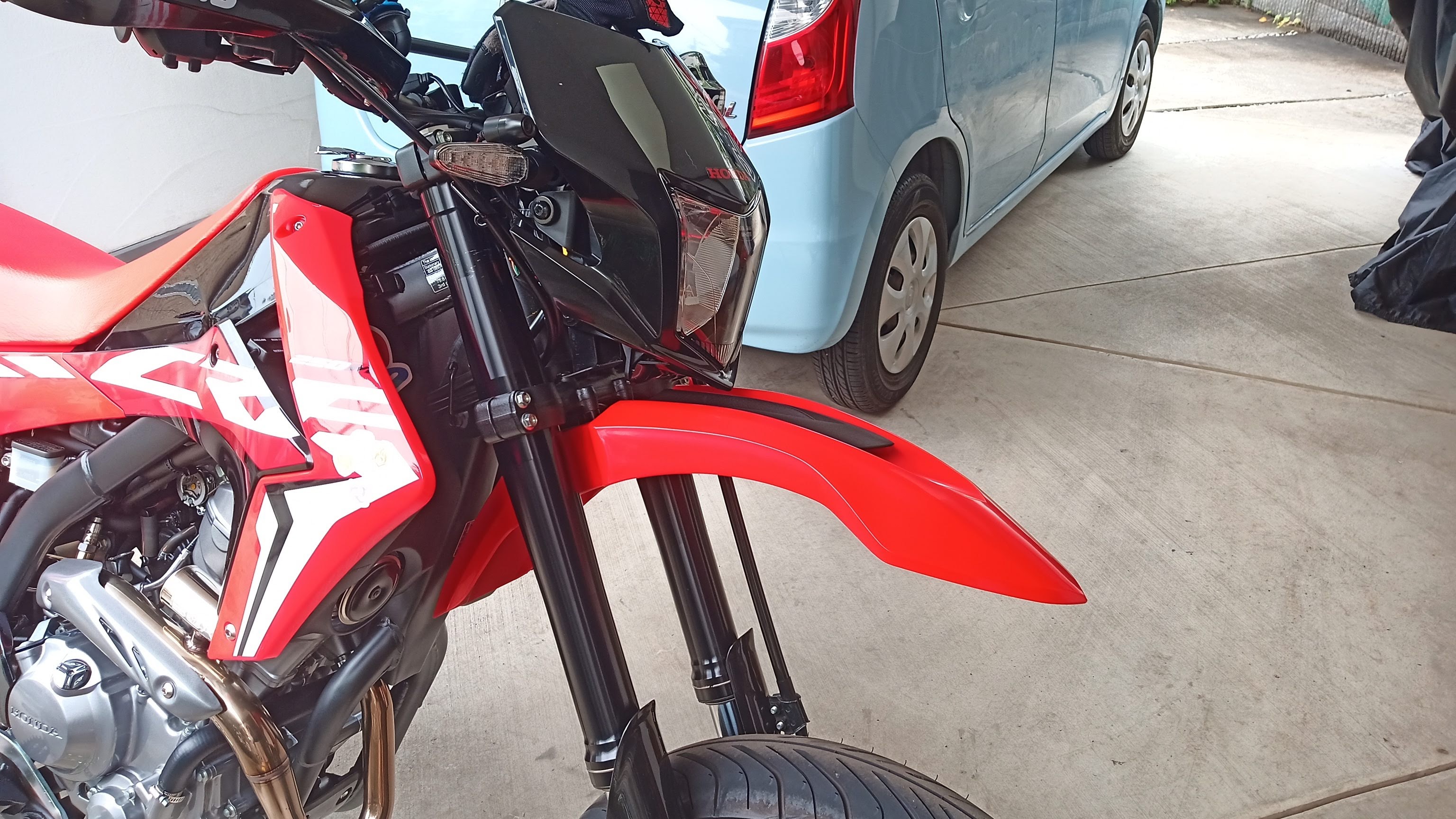2021年8月7日2021年8月7日v4hero Normal Fender CRFのフロントフェンダーをPolisortsのモタードフェンダーからノーマルに戻してみた。 ノーマルのほうがライトカウルからの繋がりがいいし、フェンダーとの間に隙間もできないので、ノーマルがいいかなと思って戻してみたんだけど、やっぱりモタードにノーマルのフェンダーは大き過ぎるような気がするなぁ….。 共有: クリックして X で共有 (新しいウィンドウで開きます) X いいね:いいね 読み込み中…