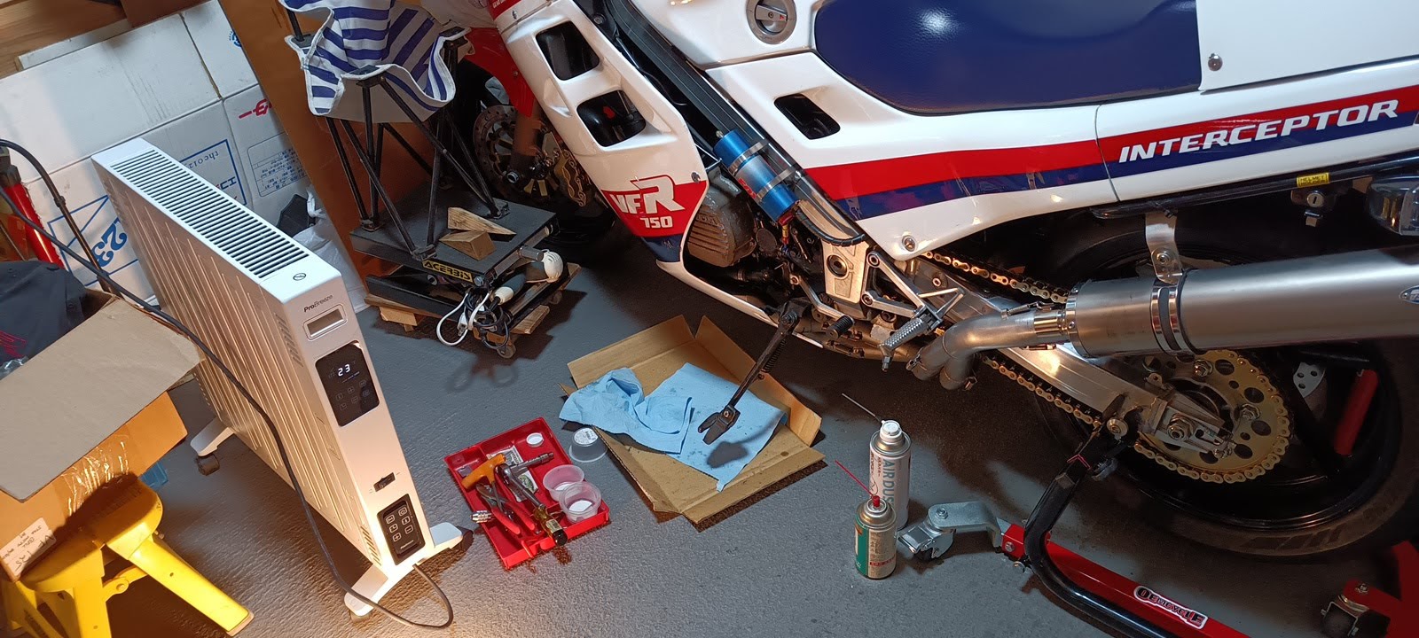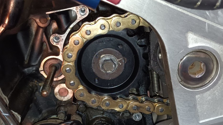 残念無念。ドライブスプロケットカバーを加工すればいいけれど、メンドクサイので計画中止で元のRC30ドライブスプロケットに戻した😂