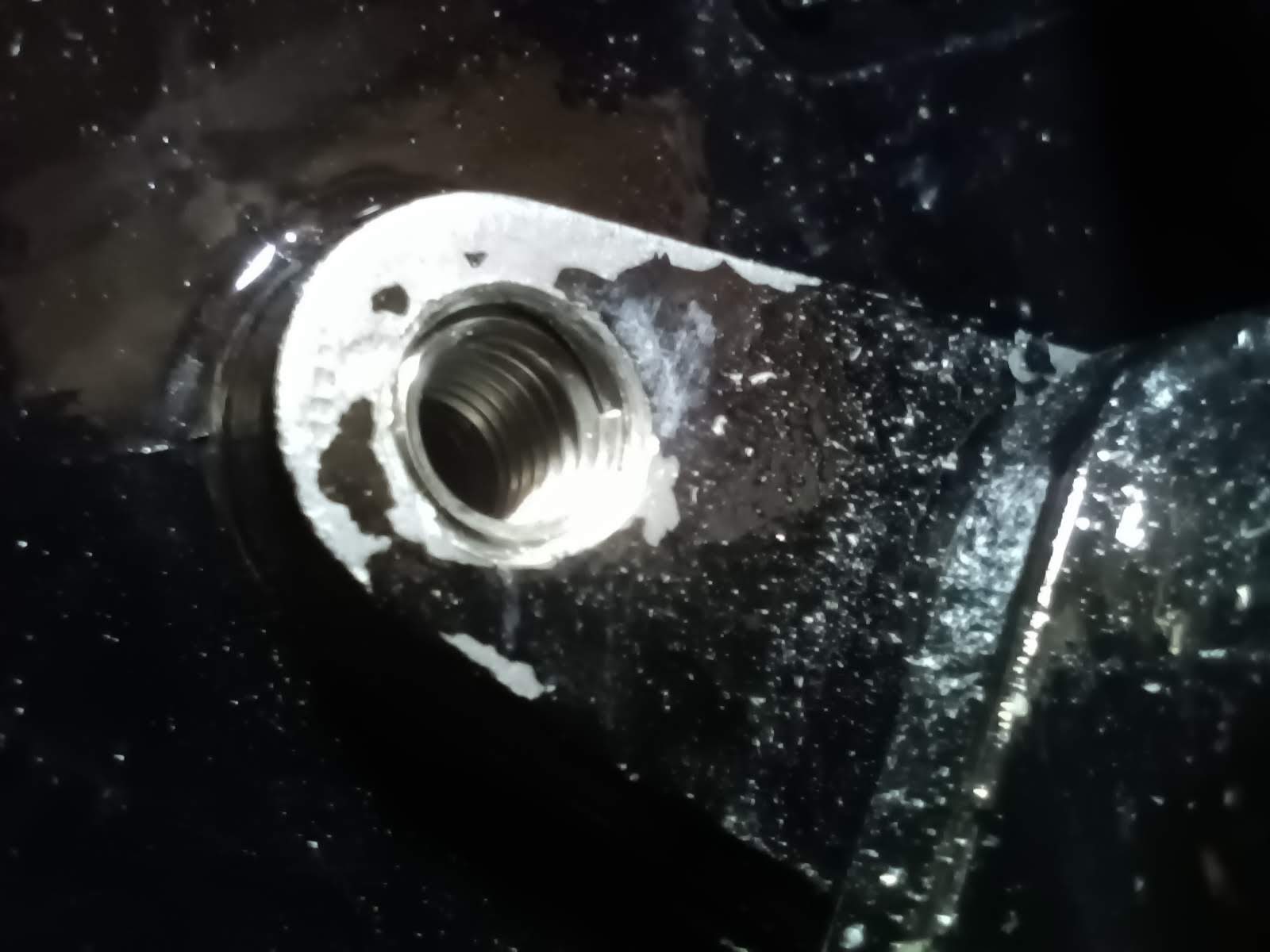 さらに一つもんだい発生で、これは俺のミスだけれと、スピードメーターギアの上側の取り付けボルトのボルト穴(黄色い丸印の部分)を潰してしまった💦