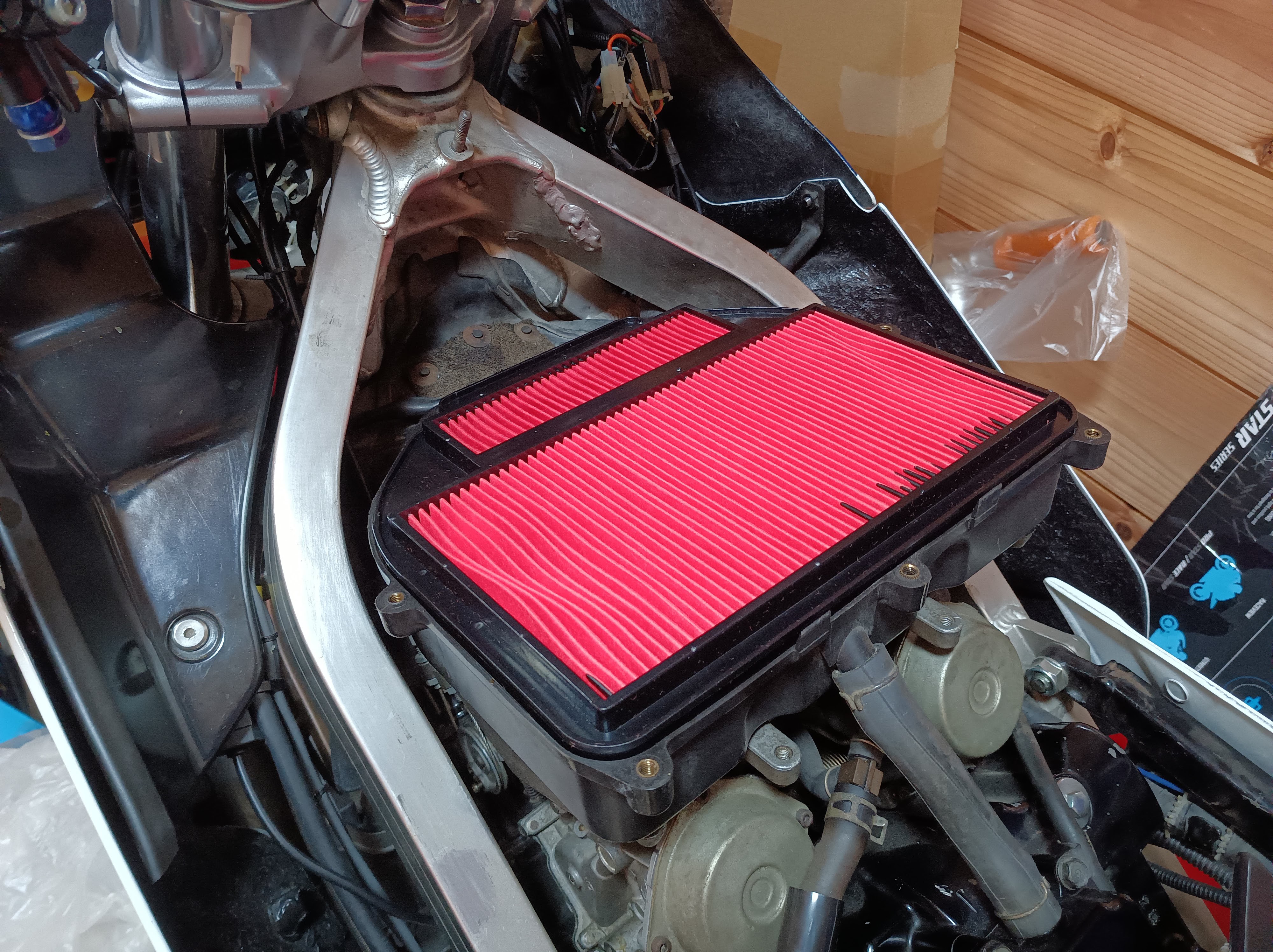 RC24(VFR750F)のエアクリーナエレメントを交換した。
