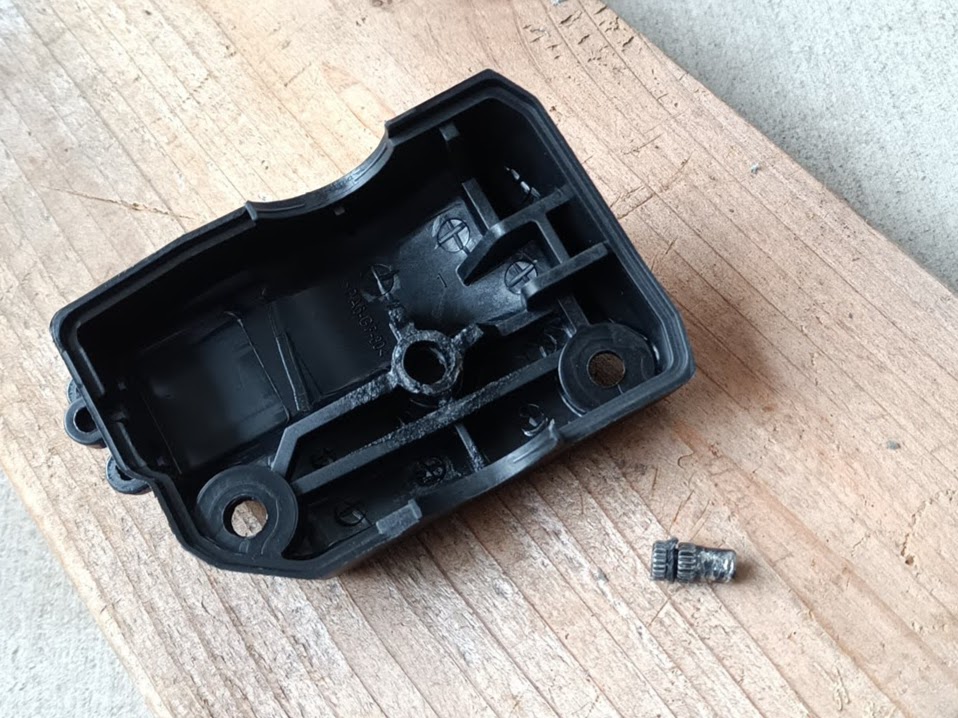 以前はリューターと金属ヤスリで金属の回り止めの突起を削っていたが、メチャ時間が掛かる上にあまりきれいに仕上がらなかったので、今回はヒートガンに細い吹き出し口を付けて突起の周囲のプラスチックを加熱して、プライヤーで突起を引っこ抜いた。