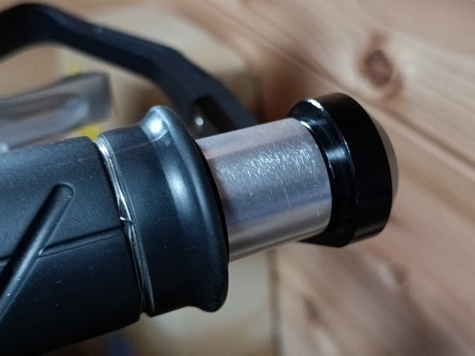 左右のグリップを内側にずらしながらしっくりくるポイントを探ってみたところ、左右とも25mm余らせた辺りだった。