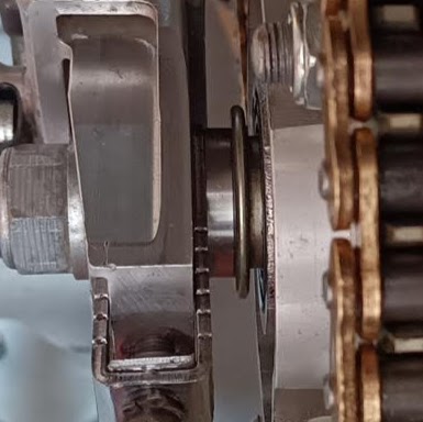 少し前の投稿で、RC24(VFR750F)のリアアクスルシャフトがNSRか何かから流用されてて長すぎるのと、左側にM20厚さ3mmのワッシャーを2枚挟んで調節しているって書いたが。