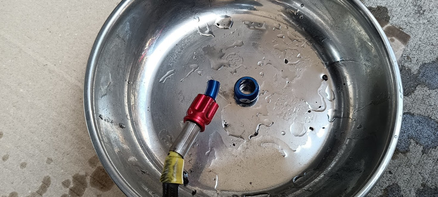 だが、結論から言うとマスターシリンダーじゃなくてブレーキホースのバンジョーアダプターに亀裂が入っていてフルード漏れを起こしていた。
