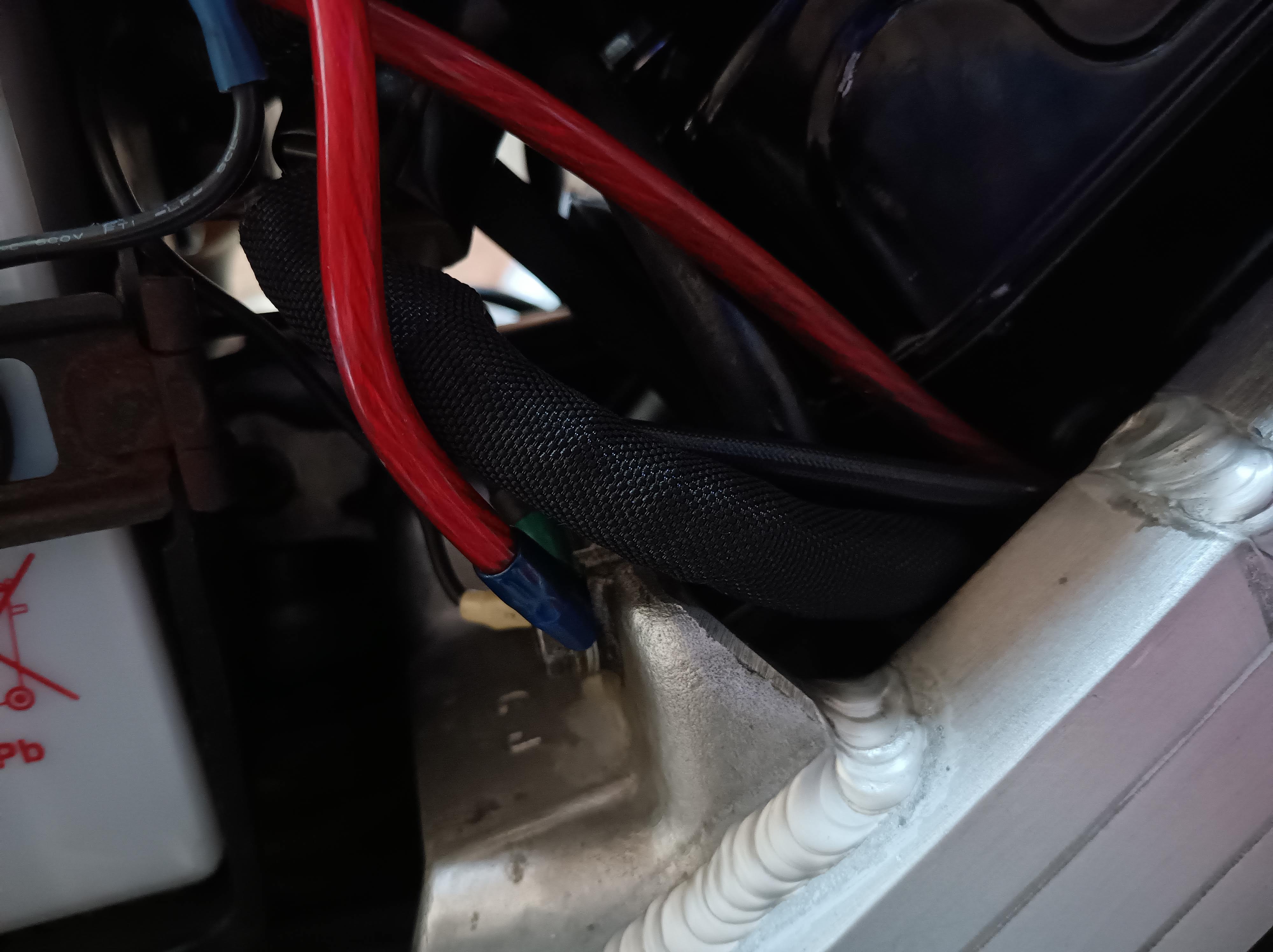 あと、ひとつ前の投稿で書いたハーネス保護チューブが裂けてしまっていたのは、セルフラップを買ってきて上から巻いてやった。ちょっとぶっとく見えて不格好だけど、外からは見えないし、保護にはなるのでこれでいいや。