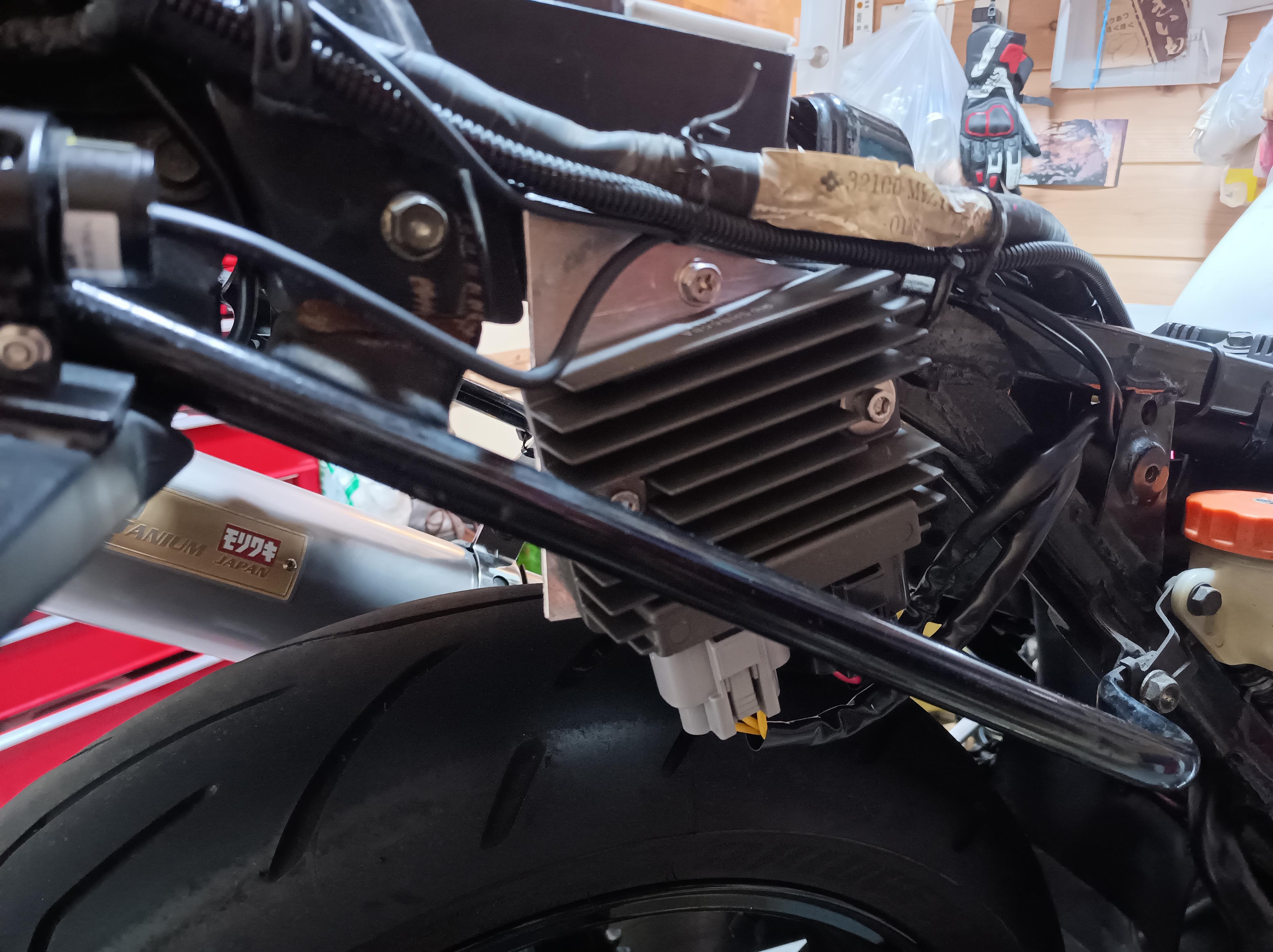 以前、RC24(VFR750F)のレクチをリアフェンダーの裏側に移設した。